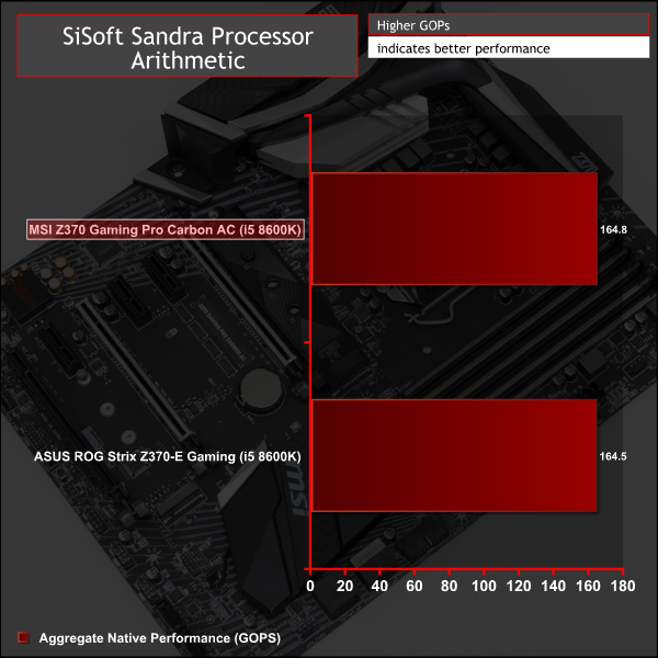 SiSoft Sandra 2017 is a multi-function utility program that supports remote analysis, benchmarking and diagnostic features for PCs, servers, mobile devices and networks. We run the application’s processor arithmetic test to gauge the CPU performance on each tested motherboard.