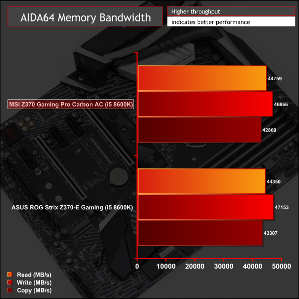 Memory performance is about right for the frequency of the memory and the CPU, it differs insignificantly between the ASUS and MSI motherboards on test.