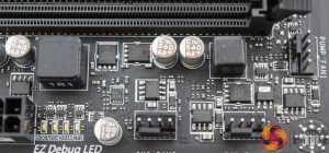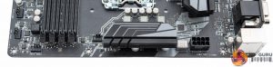 The CPU VRM has a couple of aluminium heatsinks on cooling duties which make contact with thermal pads. They will be sufficient for basic to moderate overclocking but anything significant should be done on a higher-end motherboard.