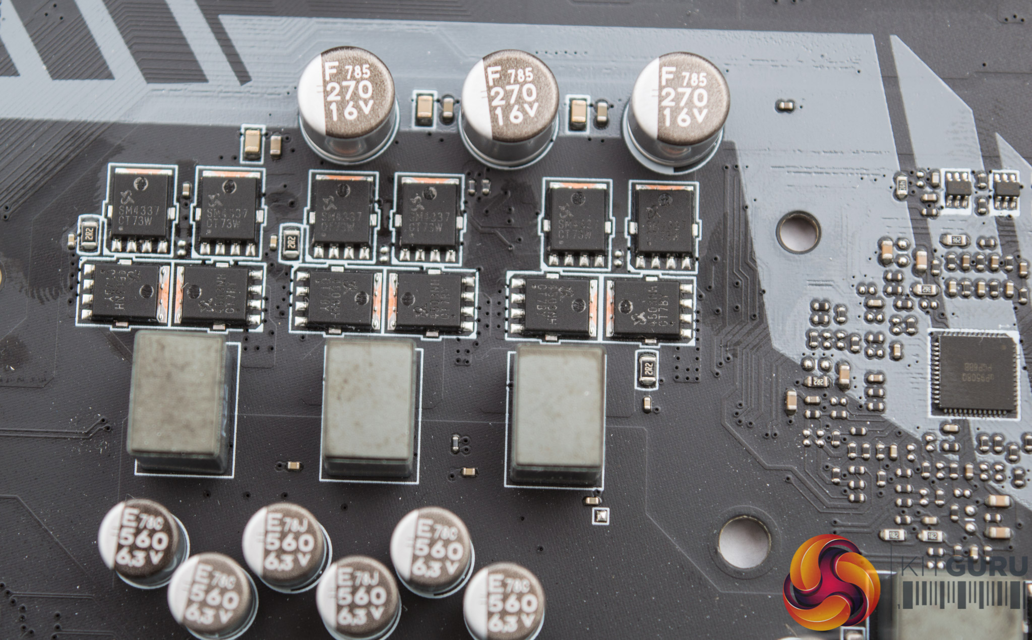 The VCCSA and VCCIO phases appear to be comprised of a further mix of Sinopower SM4337 and 4503NH MOSFETs as well as a GSTek GS7133 driver, there is also another GS71113 driver located near the iGPU phases.
