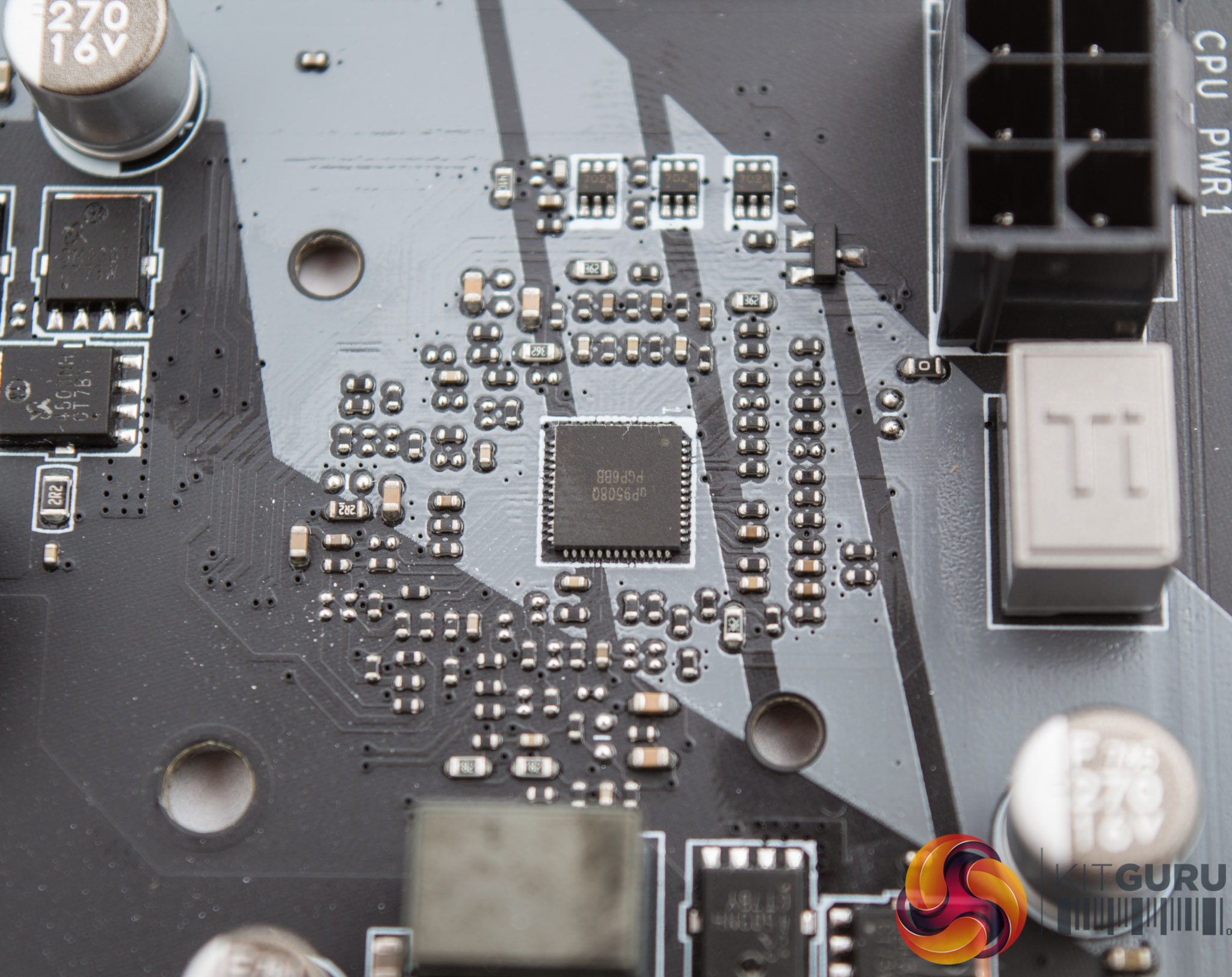 The CPU VRM makes use of a uP9508Q PWM controller which we also saw on the MSI Z370 Gaming Pro Carbon AC. There is a publicly available data sheet for a uP9508 controller, see here, that indicates a maximum of a 3+2 phase solution but it seems it can be made to operate in 4+1 phase mode on many motherboards, or the uP9508Q is a separate variation that supports a 4+1 configuration.
