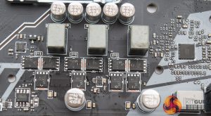 The memory phases use Nikos PK632BA and PK618BA MOSFETs as well as myriad of other components, it's likely a single phase solution.