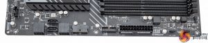 The placement of SATA ports and USB headers along the long-edge of the motherboard is a little messy, MSI has mixed right-angle and vertical connections with some recessed and some not. This isn't going to be a motherboard for the fussy “cable-manager”.