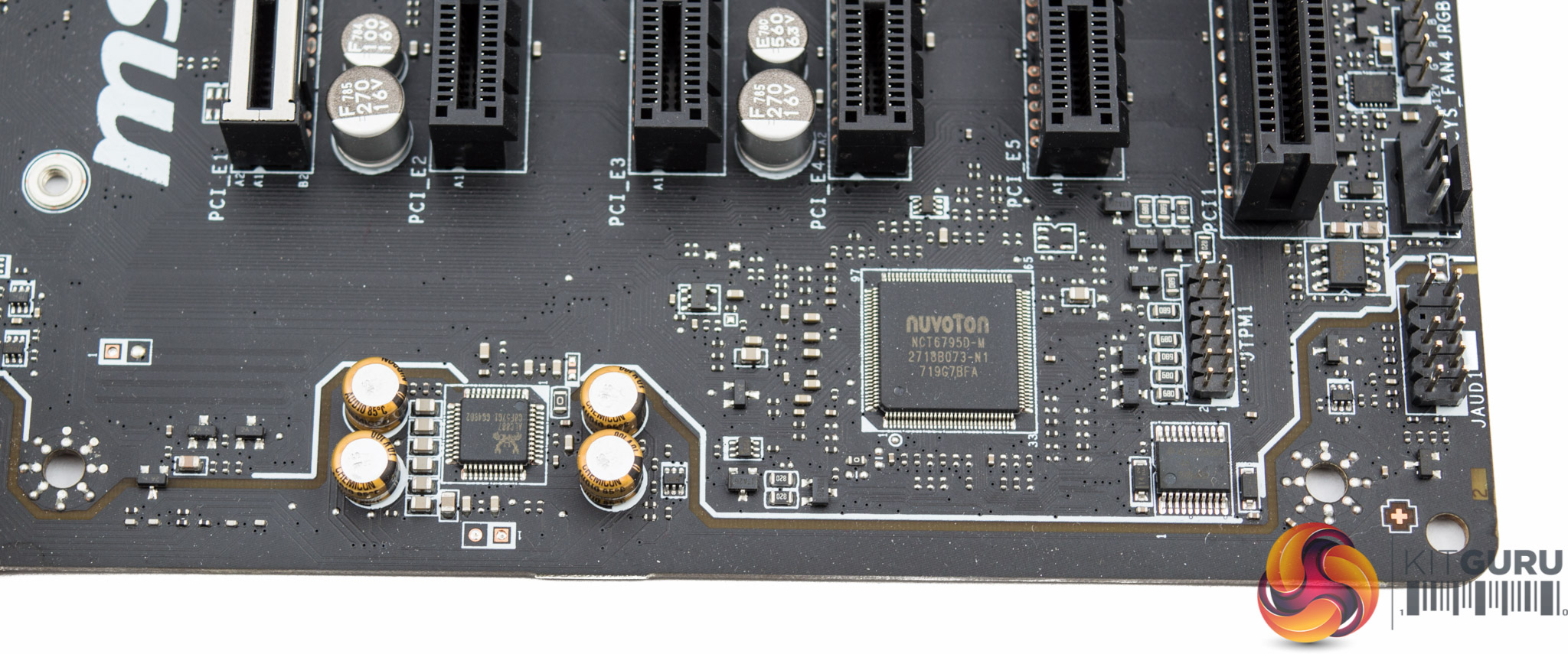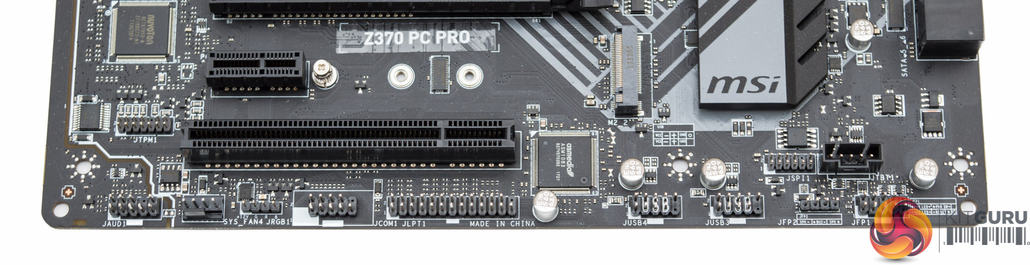MSI provides a legacy PCI port, something we've not seen in a while, through ASMedia's ASM1083 chip that shares bandwidth with a PCIe 3.0 1X slot. At the end of the motherboard there's also the optional RGB header (12v GRB).