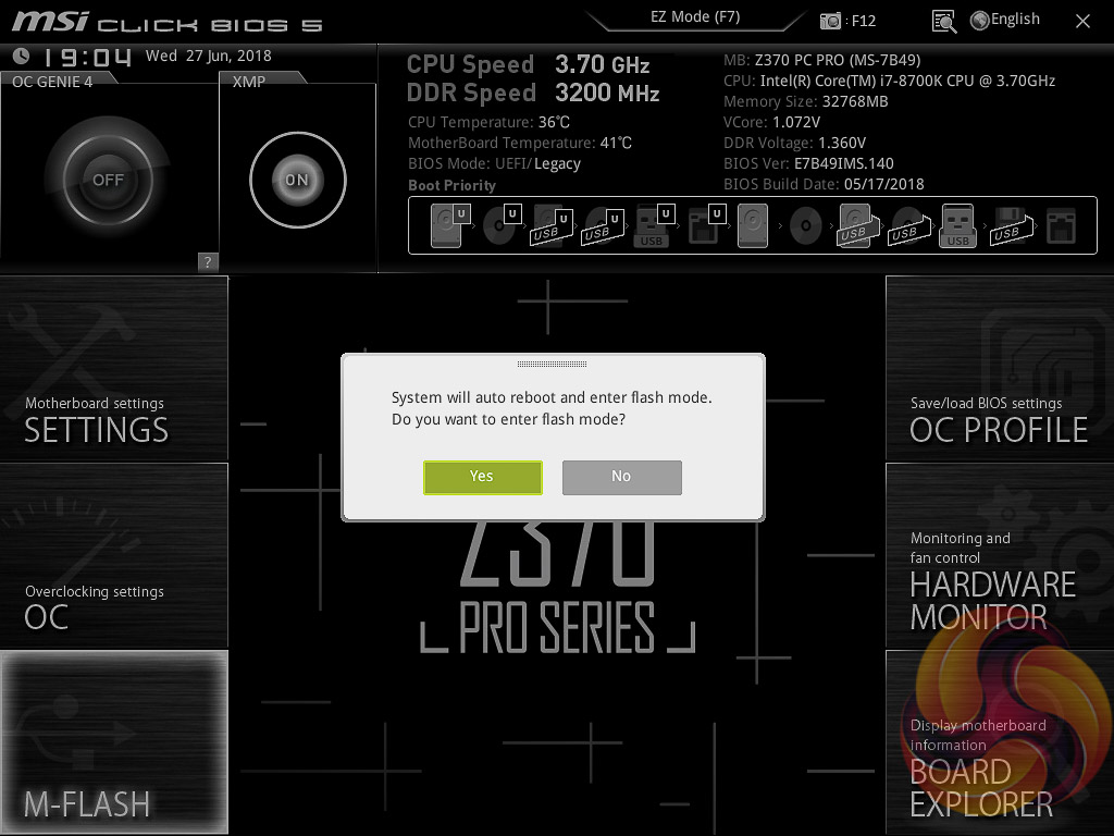 M-Flash forces you to reboot to enter the flashing process, and it is somewhat tedious though in practice all motherboard vendors will eventually reboot multiple times during the flashing process to apply the updates. However, you can’t view any of the M-Flash options or interface without conducting a reboot, whereas most vendors will at least allow you to navigate around in the interface, see what options are available to you and even start the flash, before a reboot is eventually required.