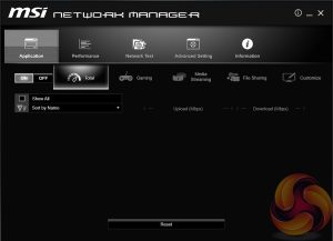 MSI’s Network Manager, called Gaming LAN Manager on Gaming series products, is a repackaged cFos product that lets you enable packet prioritisation rules for software on the host system. It has a number of baked-in profiles for different usage scenarios including streaming, gaming and file sharing.