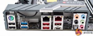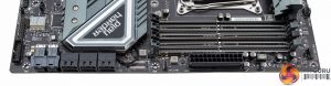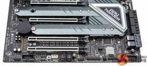 The M.2 provision is excellent in that both ports support PCIe 3.0 x4 32Gbps and have cooling solutions. The M.2 slot nearest the CPU socket supports up to 22110 devices (110mm) while the other slot is limited to 2280 (80mm).