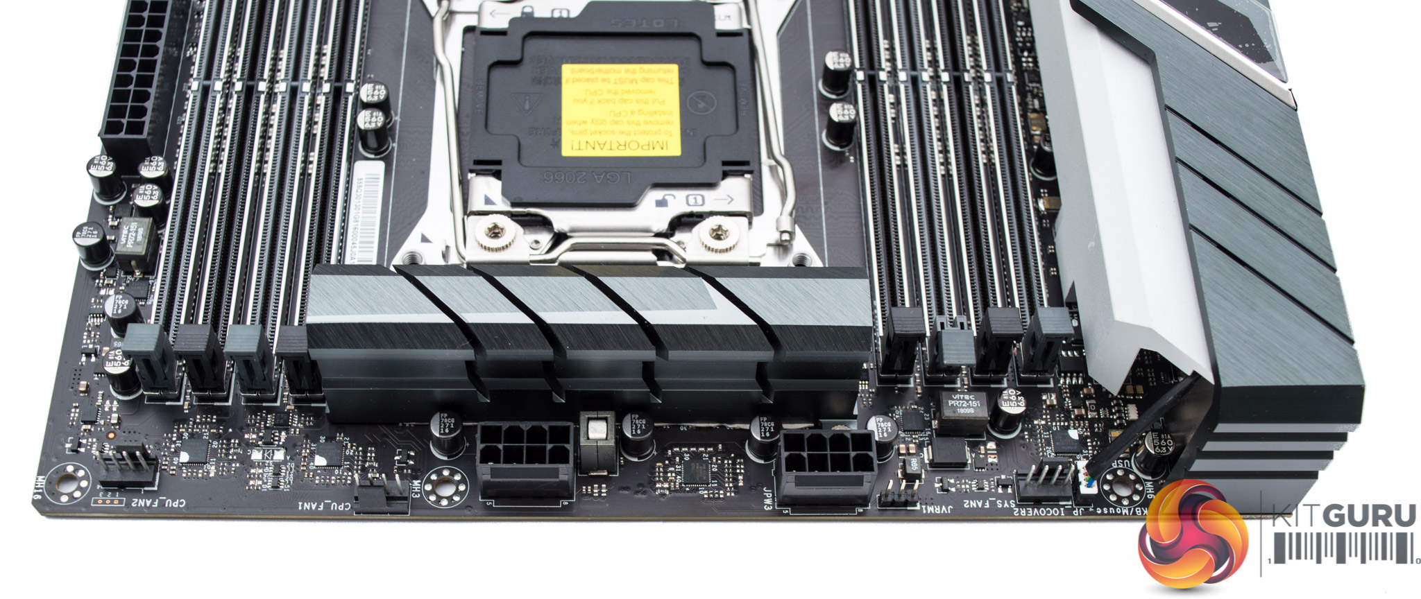 The CPU socket uses two 8 pin EPS connections and has immediate access to a pair of fan headers.