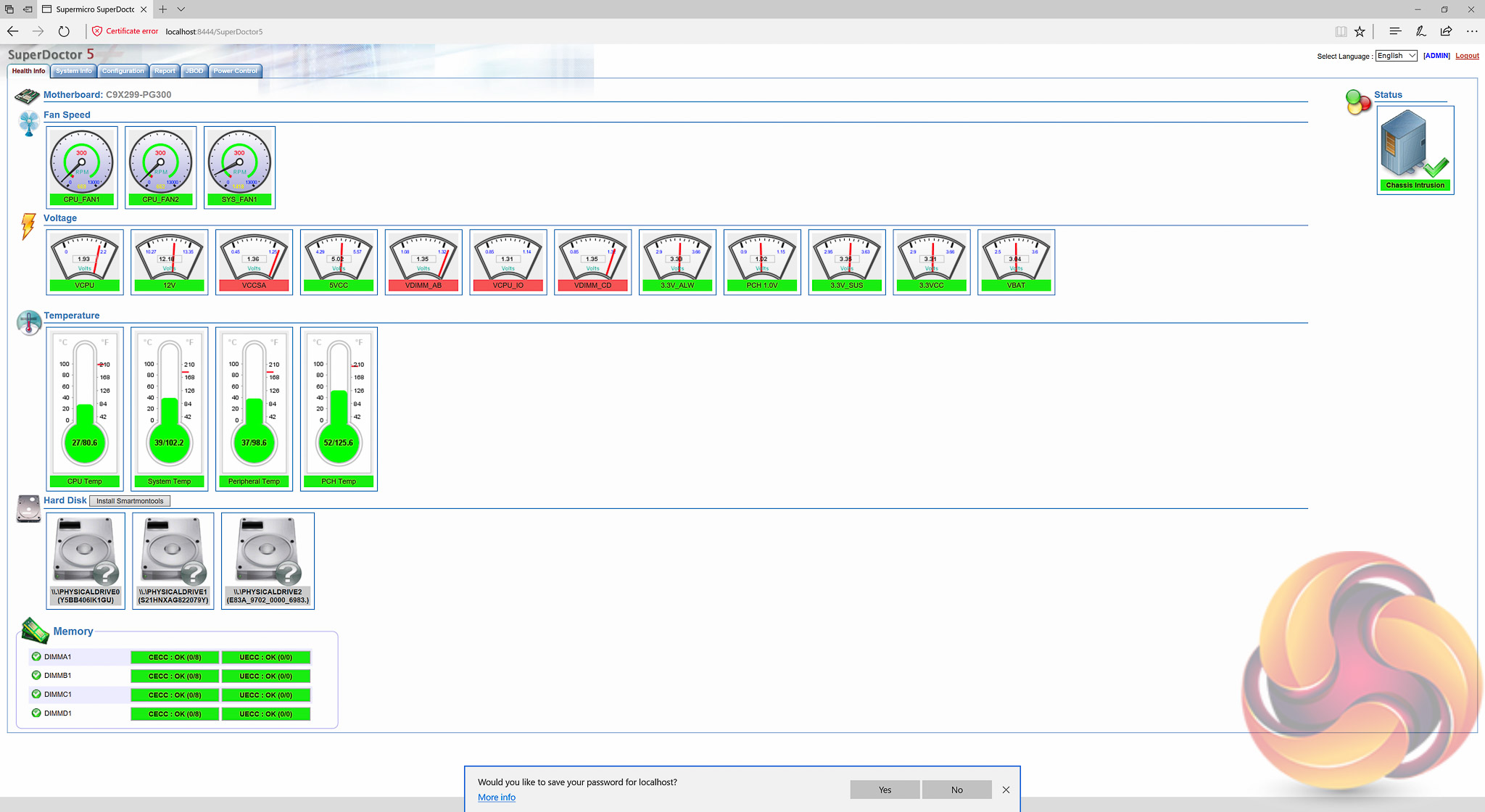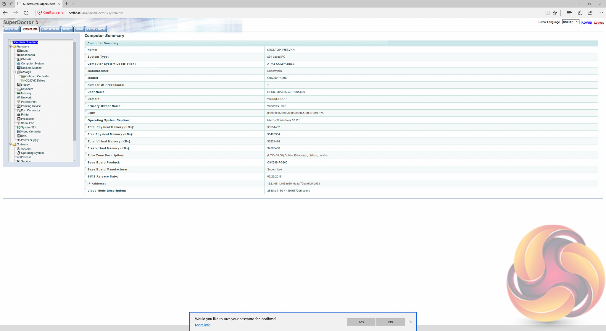 Supermicro SuperDoctor 5 comes with the driver/utility DVD but isn't on the Supermicro website. It's a very niche software utility that runs a local web server on the machine to monitor and configure the system through a web interface, the default login is ADMIN/ADMIN. It's a tool that looks and feels like a system administrator utility and it loses a lot of its useful functionality with the C9X299-PG300 since IPMI isn't supported.