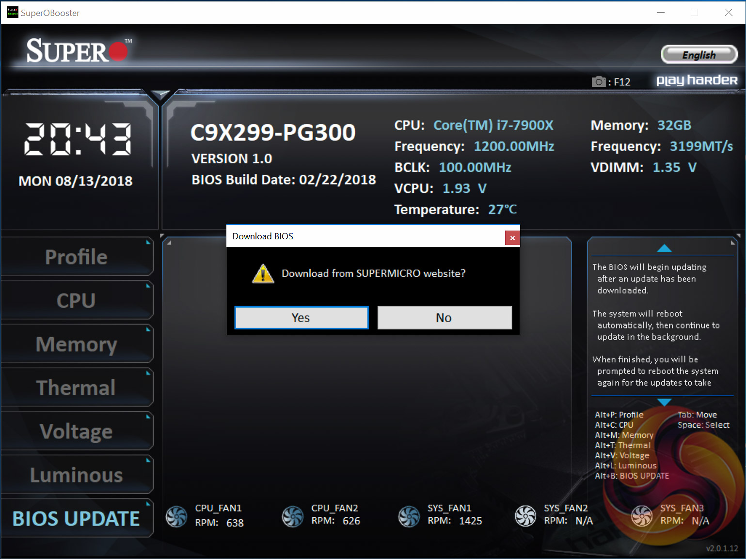KitGuru approached Supermicro about the issue and shortly after the company provided version 2.0.1.12 which worked flawlessly. That said, at the time of writing this version is still not available for download on the Supermicro website meaning any prospective buyers of this motherboard would have to rely on the current version working for them.