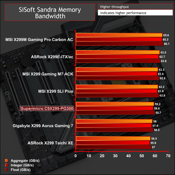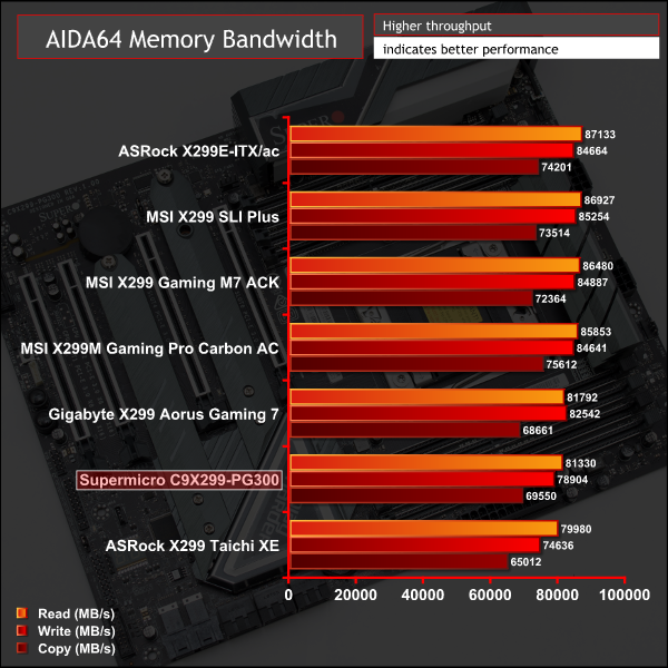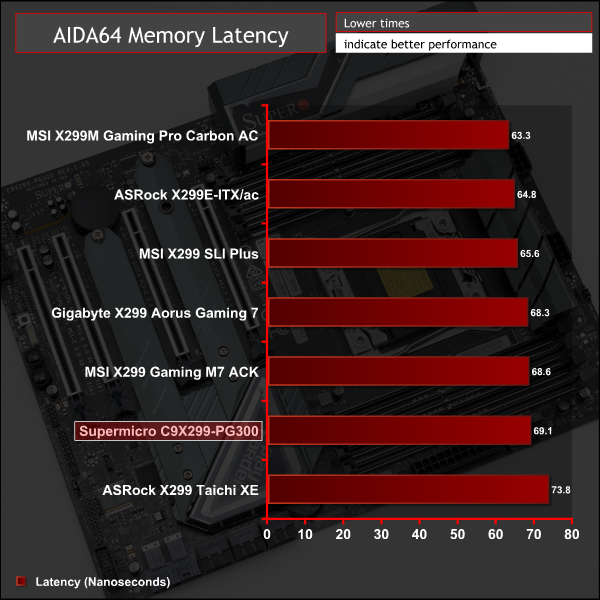 Memory performance was a little down on some competing motherboards but it is within reasonable testing error and is probably explained by less aggressive CPU Cache settings applied by Supermicro compared to other motherboard vendors.