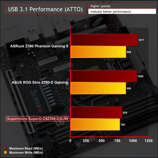 USB 3.0 and 3.1 performance were slightly behind competitors.