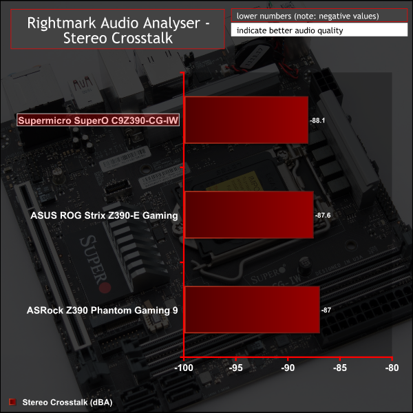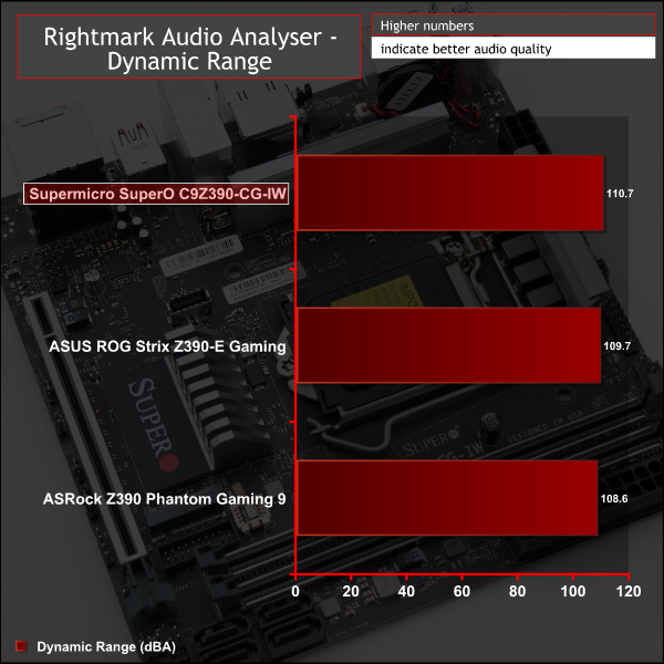 Rightmark Audio Analyser is a freeware benchmarking utility designed to objectively test the performance characteristics of audio solutions. We setup a line-in line-out loop and execute the record/playback test before generating the results report you see below. A sampling mode of 24-bit, 192 kHz is tested where available. If unavailable the closest alternative operating mode available is used and clearly marked.