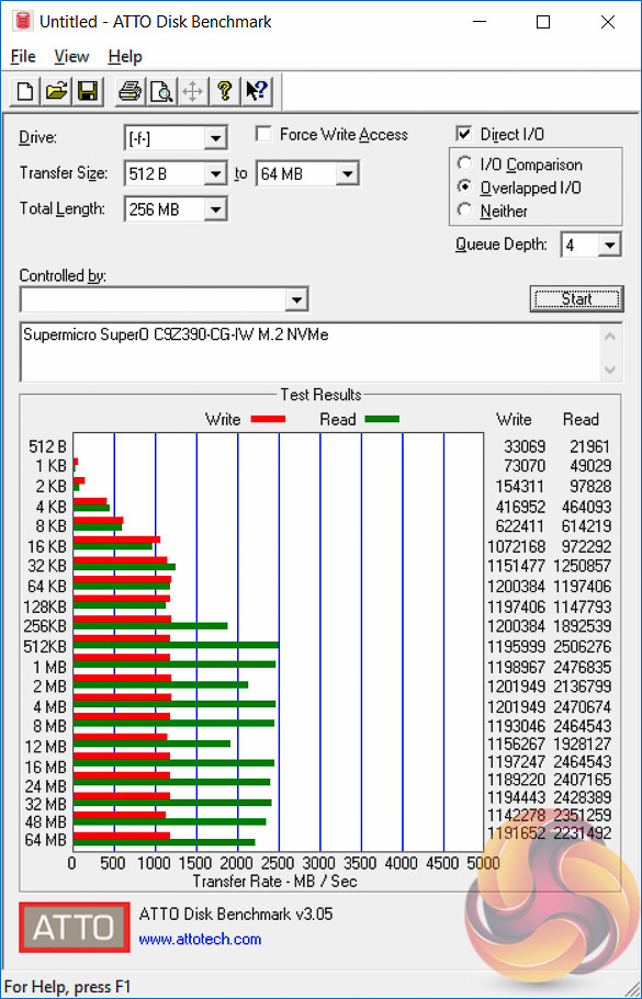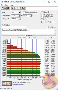 The ATTO disk benchmark is a Windows-based utility for testing storage performance of any storage drive or controller. We use the default benchmark setup.