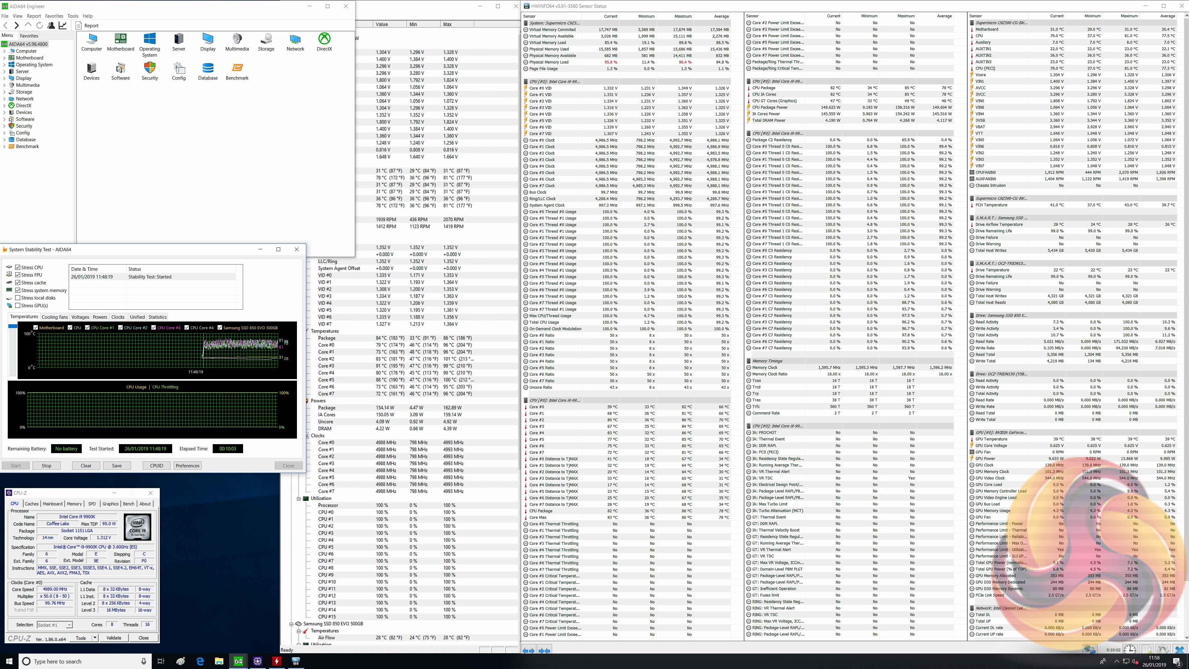 Our particular CPU is not stable at 5.1GHz even with 1.45v. The final stable overclock for almost all Z390 motherboards we may test should be 5GHz, unless there is something particularly wrong with the VRM that limits the voltage or power it can supply. In the case of the Supermicro SuperO C9Z390-CG-IW it achieved 5GHz at 1.28 volts with no significant issues.