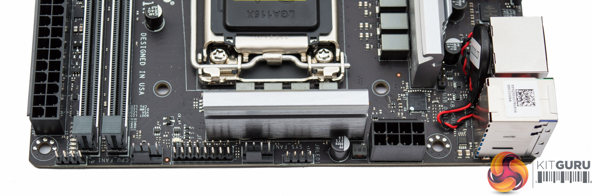 Around the CPU socket are the only two fan headers, marked CPU and System, as well as the single RGB LED connection. Power is drawn into the CPU VRM through an 8pin EPS connection.