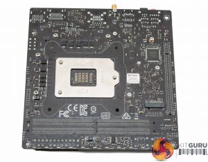 Note the CMOS battery is mounted vertically to save space, a common practice on mini-ITX motherboards. However, in this instance there is no clear CMOS button to go with it meaning a failed overclock has to be recovered by unplugging the fiddly CMOS battery cable – which is less than ideal.