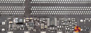 An unshielded Realtek ALC1220 codec provides the audio, it has four audio capacitors with it and is not on an isolated PCB.