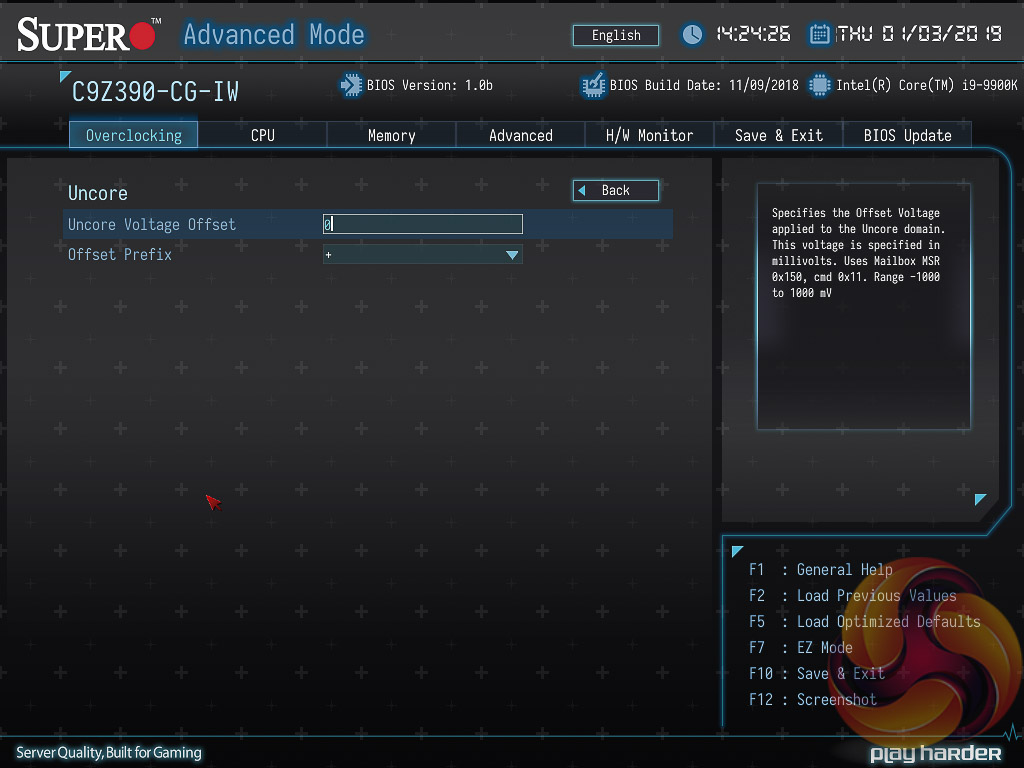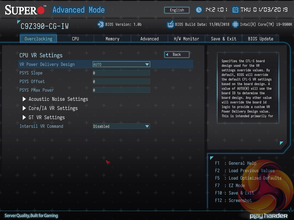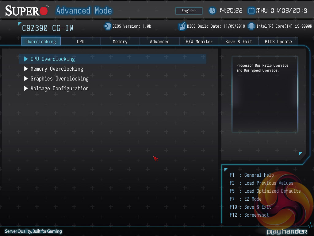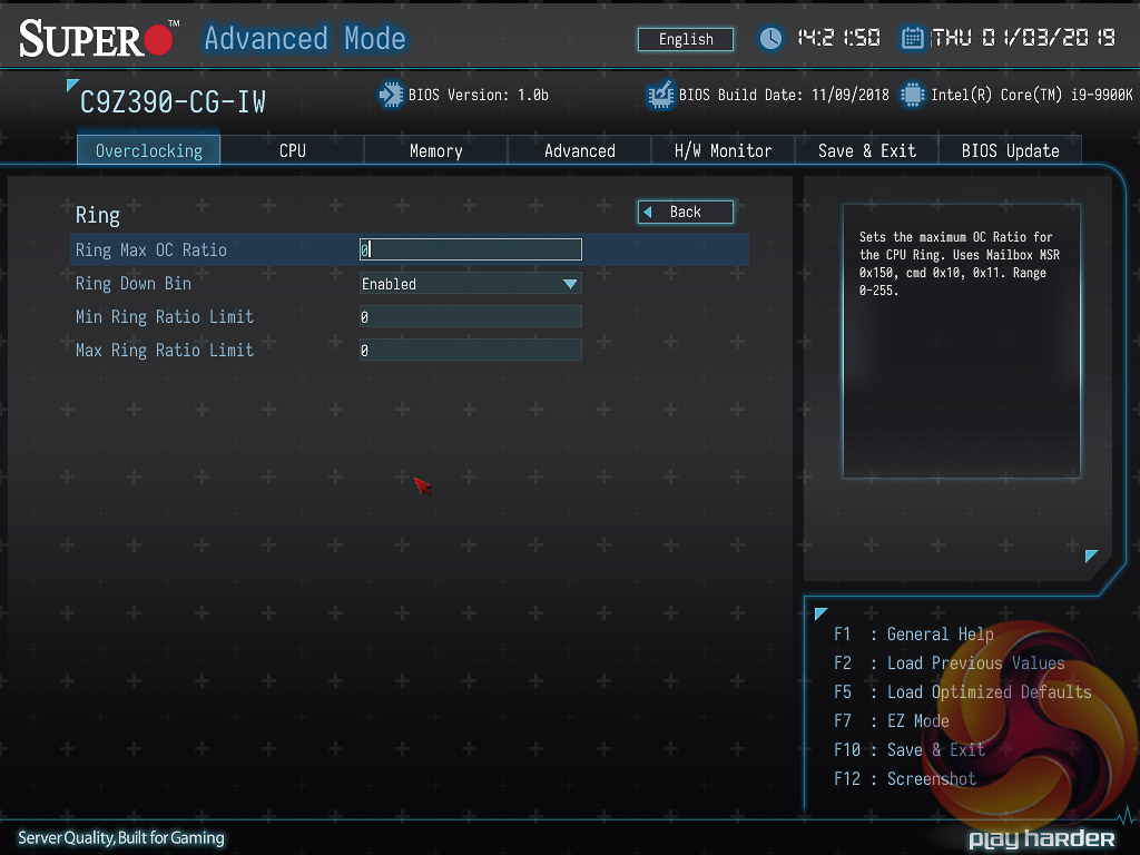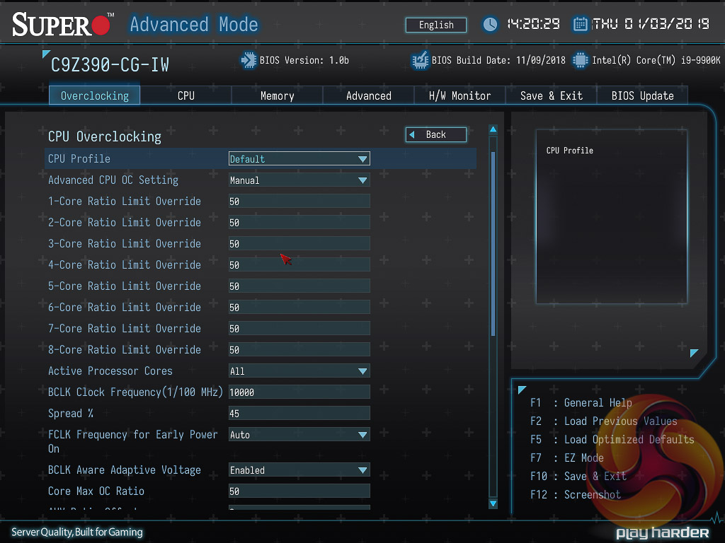 The Overclocking options are exhaustive and Supermicro appears to give the user just about every option that Intel’s hardware allows for. It can be a little intimidating at first but there’s no reason to treat overclocking any different to other motherboards – simply dial in a core voltage in the “Voltage Configuration” section, using the millivolt format (1.2v = 1200mv), and then set the core ratio in the main “CPU Overclocking” section by tweaking all the core ratios to the desired frequency.