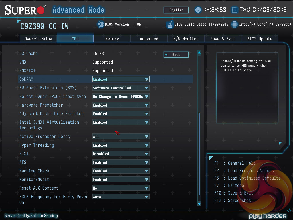 Update 26th January 2019 – Supermicro issued a test UEFI version to KitGuru, still marked 1.0b but dated 5th January 2019, which sets the PL1 power limit to 180W and PL2 power limit to 250W when an XMP memory profile is used. This means the CPU does not throttle after setting an XMP profile, in fact it runs consistently at 4.7GHz across all cores and runs at an approximate 145W TDP, which is well outside of Intel's stock 95W specification. The performance has improved but this is at the expense of heat and power consumption, a trade-off other motherboard vendors have also been silently making without informing consumers. This new BIOS is not yet available for public download but Supermicro informs us it will be made available soon.