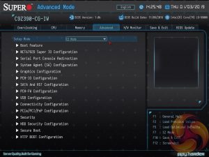 The Advanced section of the UEFI provides a long list of configuration items ranging from chipset configuration to direct interfacing with onboard ICs. There are a boat-load of configuration options here, most of which the average user is best leaving alone.