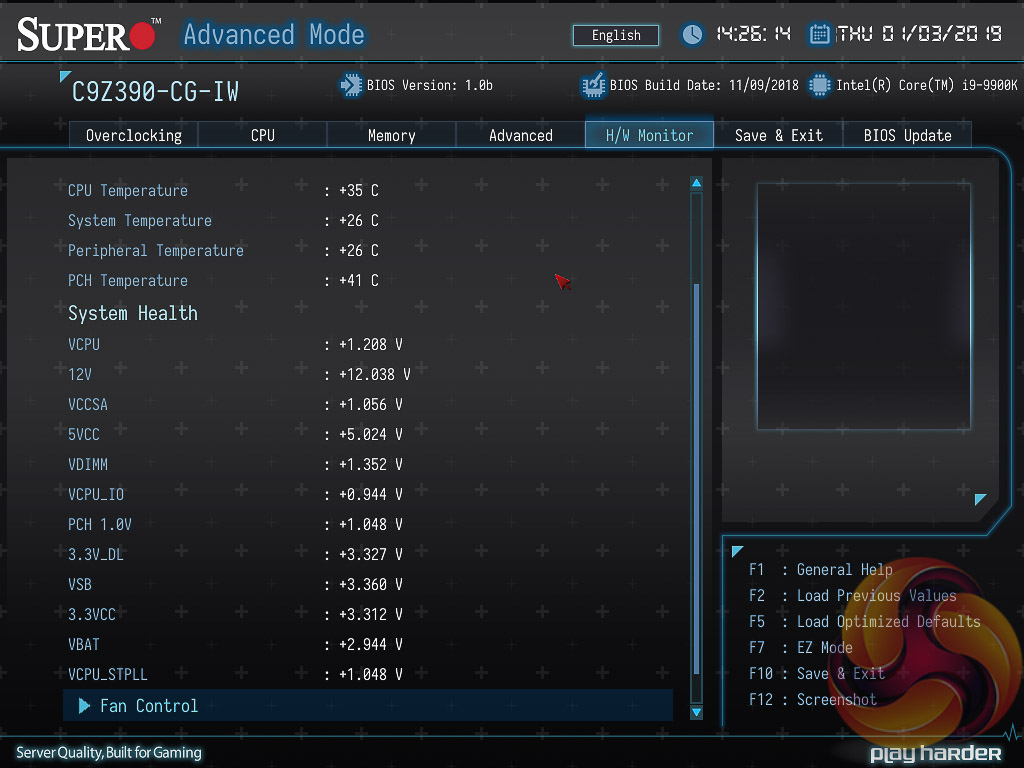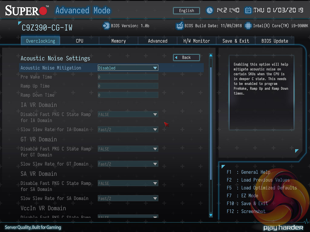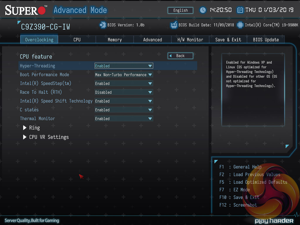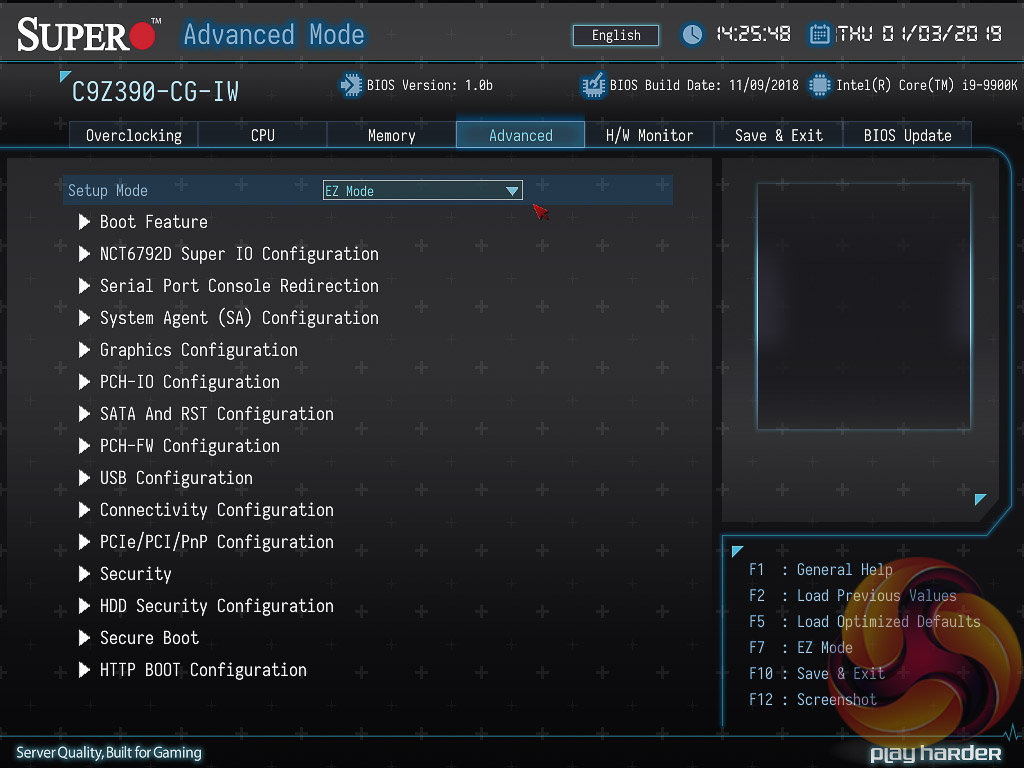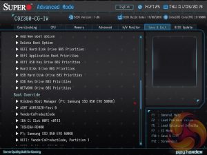 Supermicro's UEFI for its consumer SuperO gaming motherboards seems to be a work in progress. The iteration of that UEFI delivered with the SuperO C9Z390-CG-IW is similar to the C9X299-PG300 KitGuru tested late last year. Upon entering the UEFI the user is greeted with an “EZ Mode” splash screen with various common options like XMP, Boot Priority and summary information. Pressing F7 takes the user into the “Advanced Mode” of the UEFI.