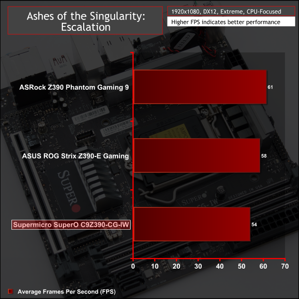 Ashes of the Singularity: Escalation is a Sci-Fi real-time strategy game built for the PC platform. The game includes a built-in benchmark tool and was one of the first available DirectX 12 benchmarks. We run the CPU-focused benchmark using DirectX 12, a 1080p resolution and the Extreme quality preset.