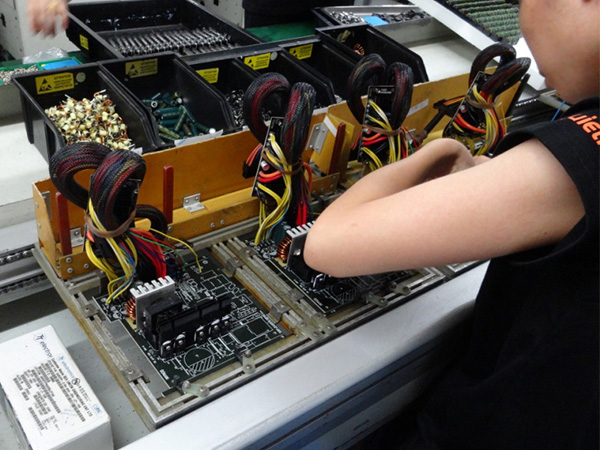 As it appears, although PSUs are partly made using automated surface-mount technology machines, they require many components, assemblies and cables that cannot easily be applied by a machine. In fact, every power supply unit spends a lot of time on to the manual production line. Workers mount heavy components like coils, preassembled components such as separate circuit board sub-assemblies and heavier heatsinks on the PCB. Cables and other things are also attached and installed manually. The final assembly is performed by people, not machines.