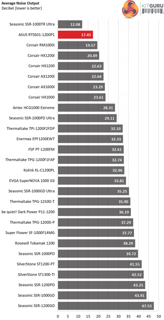 This is the quietest 1200W PSU that money can buy today! Even the super quiet HX1200i cannot compete with it.