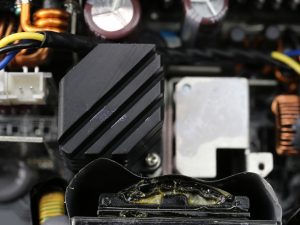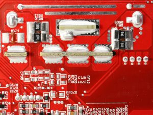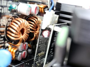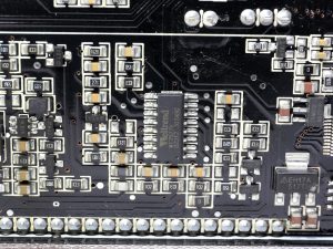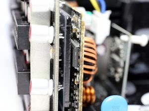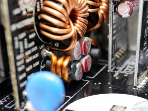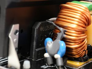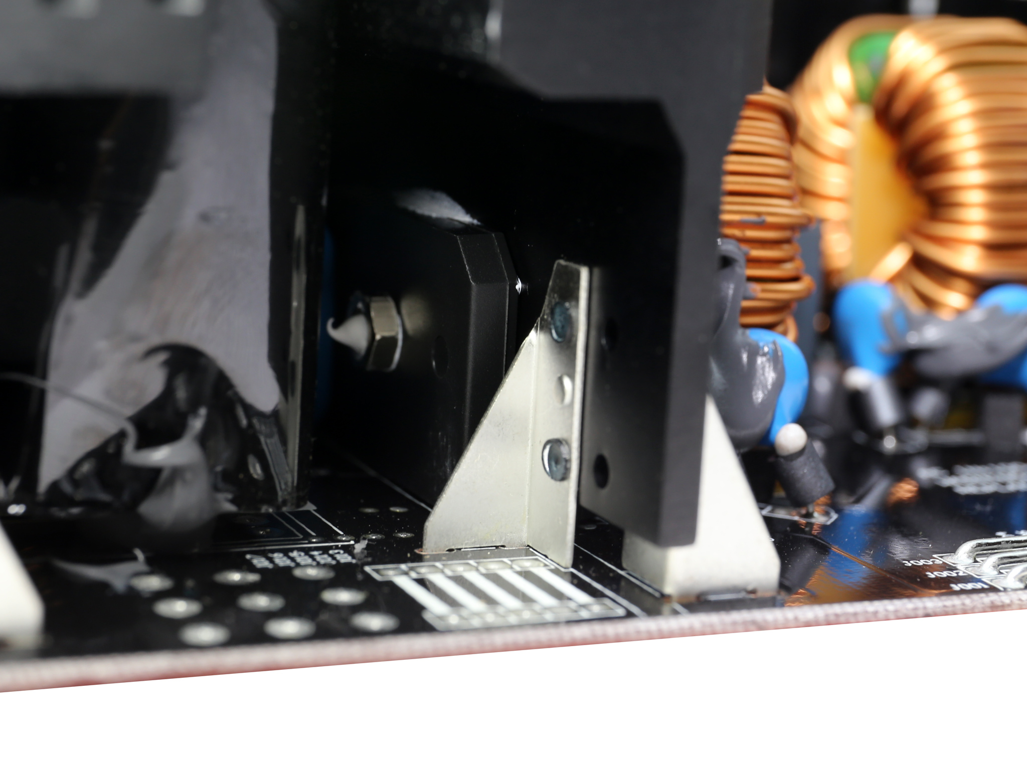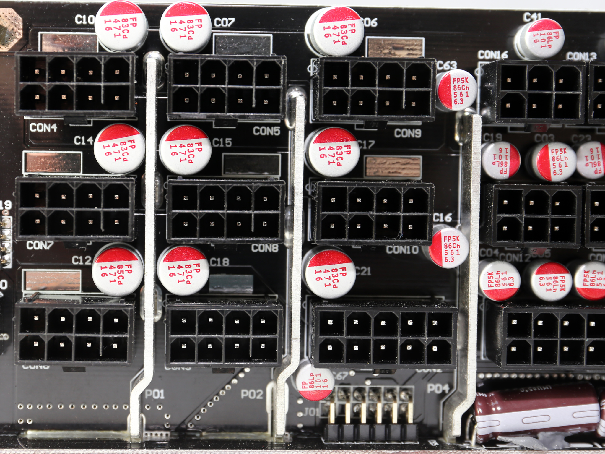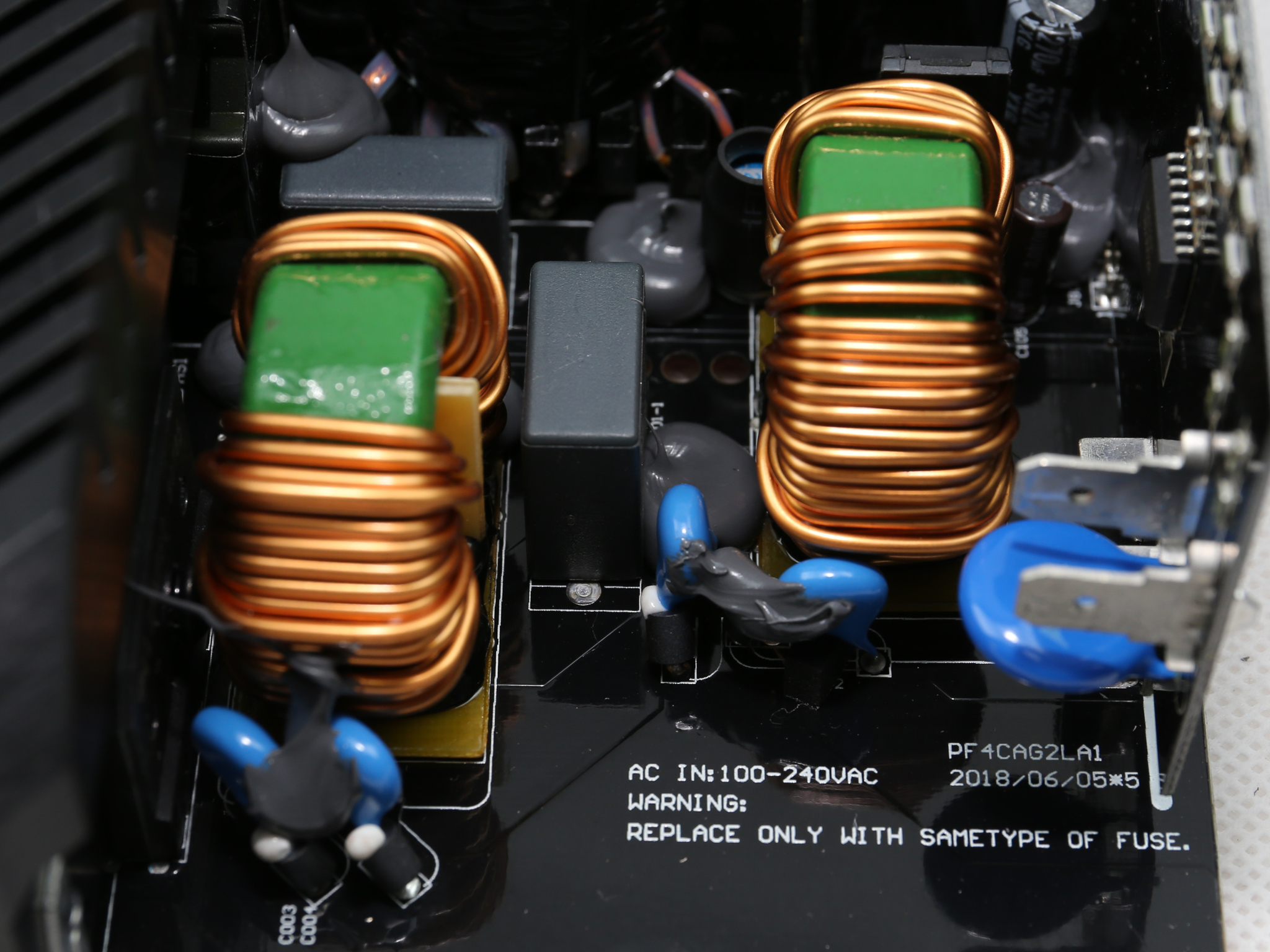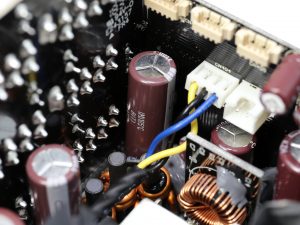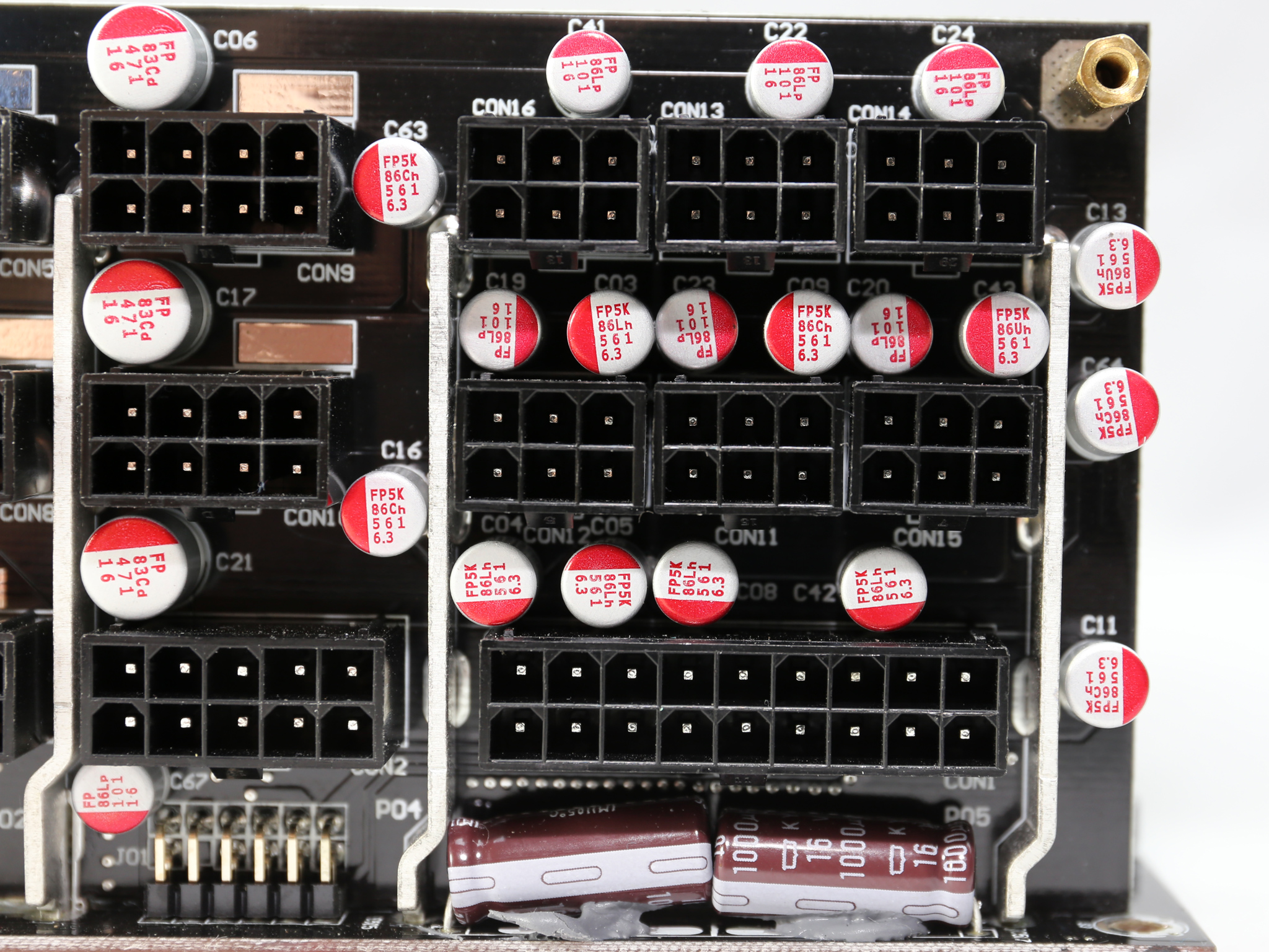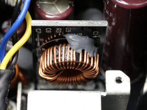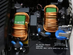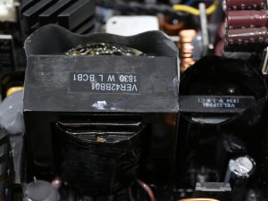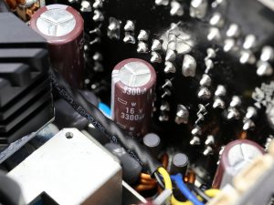 The ripple filtering on the secondary side is done by a combination of electrolytic and polymer caps. The electrolytic caps are provided by Chemi-Con (W, KY and KYB lines) while the polymer caps are by FPCAP and Chemi-Con.