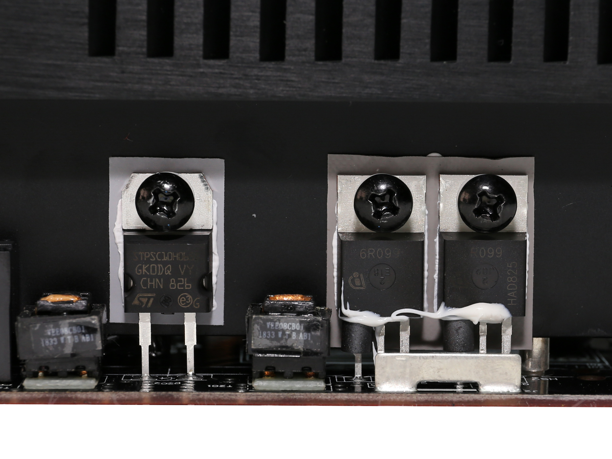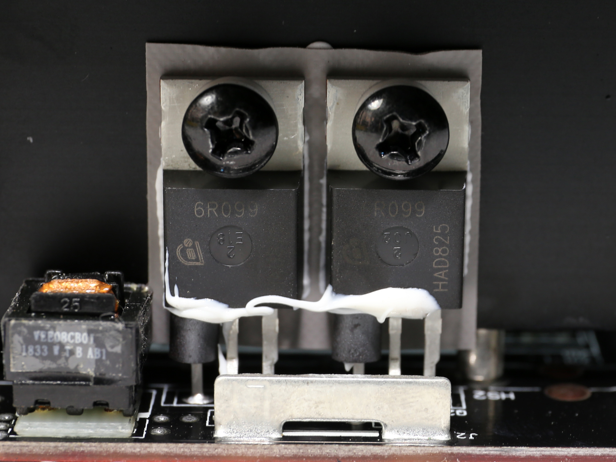 2x Infineon IPP60R099CP (650V, 19A @ 100°C, 0.099 Ohm) |