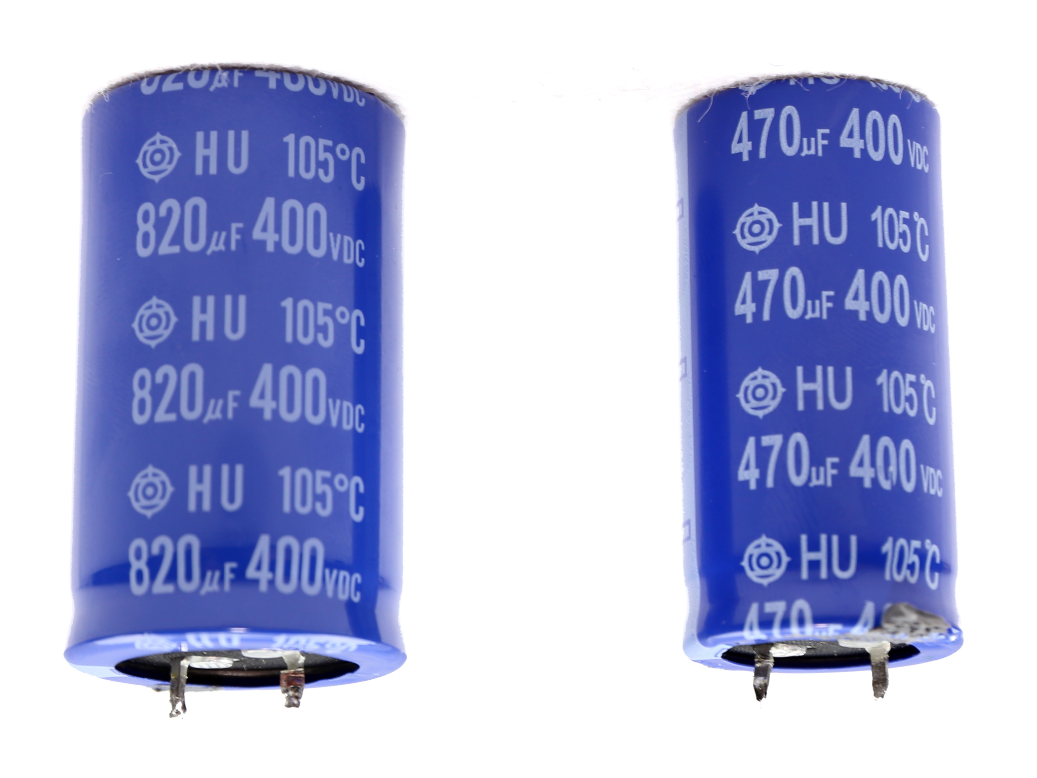 Hitachi (400V, 1x 820uF & 1x 470uF, 2000h @ 105°C, HU) |