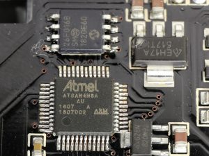 A large board, residing in the secondary side, holds the supervisor IC (Weltrend WT7527V). We also find an AS393M dual voltage comparator, residing in the primary side, which most likely provides data to the supervisor IC which is located in the secondary side. On the same board we also find a Microchip ATmega8A micro-controller and its flash memory (Microchip SST26VF016B).
