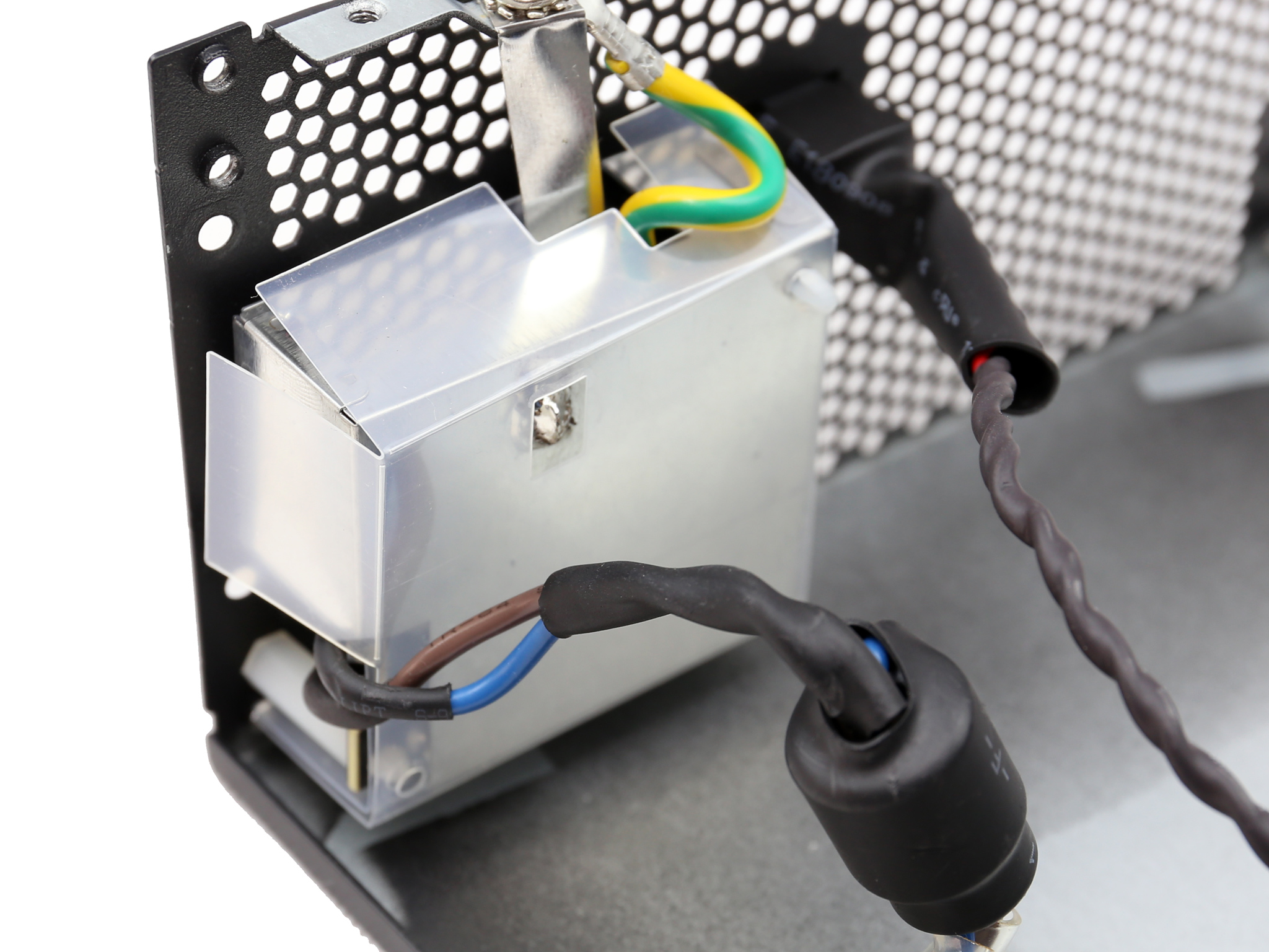 The main transformer resides next to a smaller transformer, which is used by the 5VSB circuit.