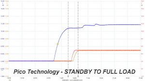 In the second test, we set the PSU to standby mode, dial full load and start it afterwards. In the last test, while the power supply is completely switched off (we cut off the power or switch the supply off through its power switch), we dial full load before restoring power.