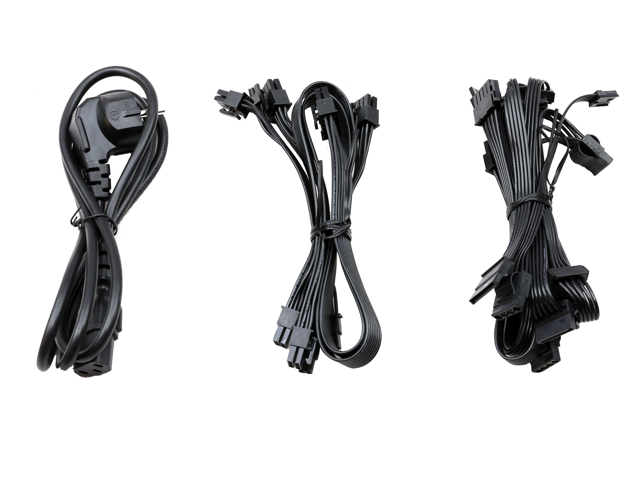 The absolutely necessary cables are fixed, with all the rest being modular. All cables have sufficient length, considering that usually a budget-oriented power supply is not combined with a huge full tower chassis, and the number of connectors is satisfactory.