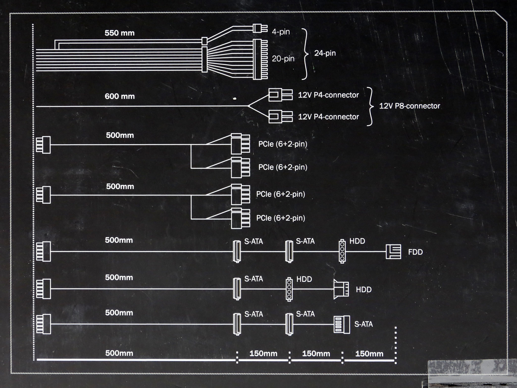 At the rear be quiet! gives information showing the length of both native and modular cables and the number of the respective connectors.