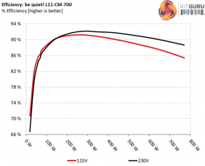 The efficiency levels are pretty high under both light and normal loads. The ACRF topology indeed delivers what FSP and be quiet! promises, in this section at least.