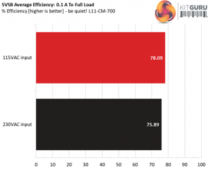 The supply should also achieve higher than 75% efficiency at 5VSB under full load, or with 3A if its max current output on this rail is higher than 3A.