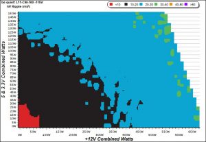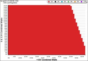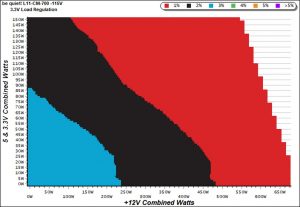 To generate the following charts, we set our loaders to auto mode through our custom-made software before trying more than 1500 possible load combinations with the +12V, 5V, and 3.3V rails. The load regulation deviations in each of the charts below are calculated by taking the nominal values of the rails (12V, 5V, and 3.3V) as point zero. The ambient temperature is between at 30°C (86°F) to 32°C (89.6°F).