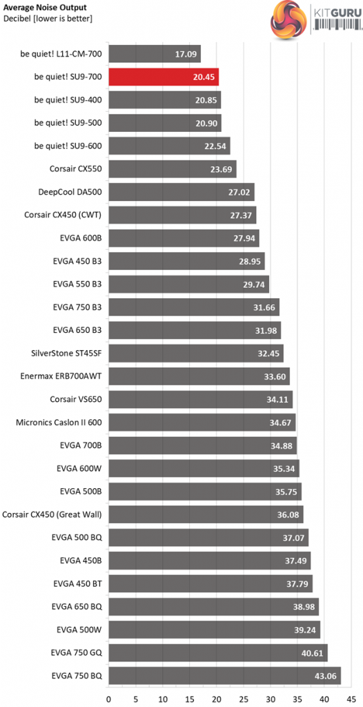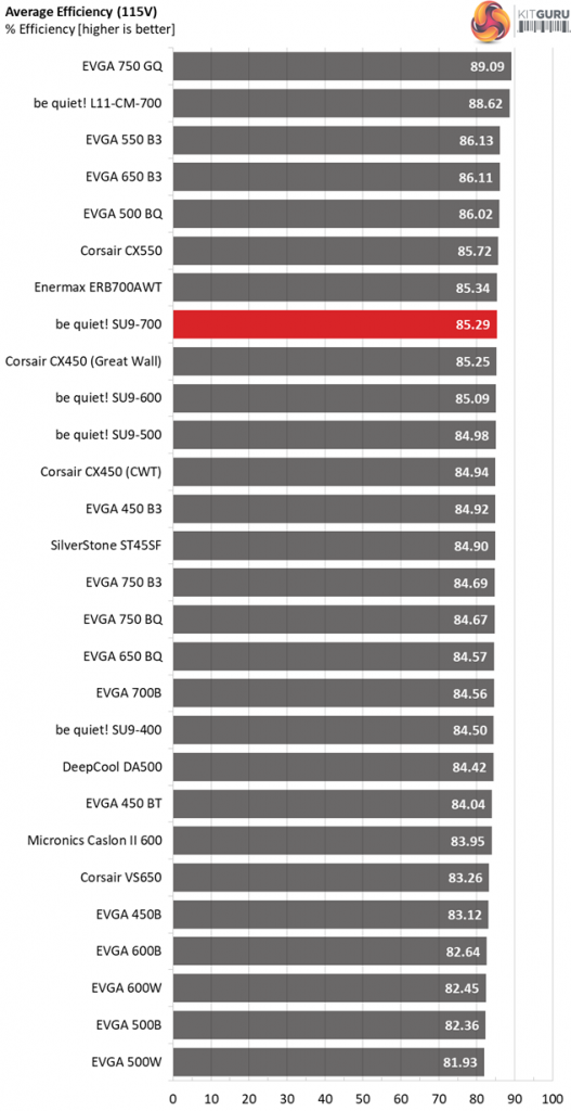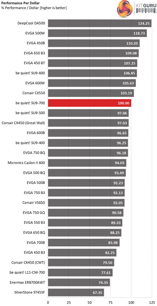 Compared to similar spec units, the SU9-700 fares pretty well as you can see since it leaves many other models behind. Only the more expensive EVGA B3 units perform notably better, but those belong to a higher category.