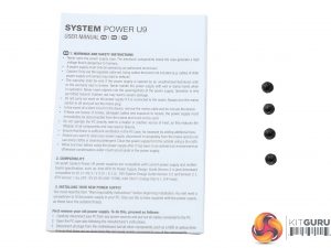 You will only find a user's manual and four fixing bolts, besides the power supply, in the box. be quiet! tried to keep the cost as low as possible, and this means no zip ties or Velcro straps in the bundle.