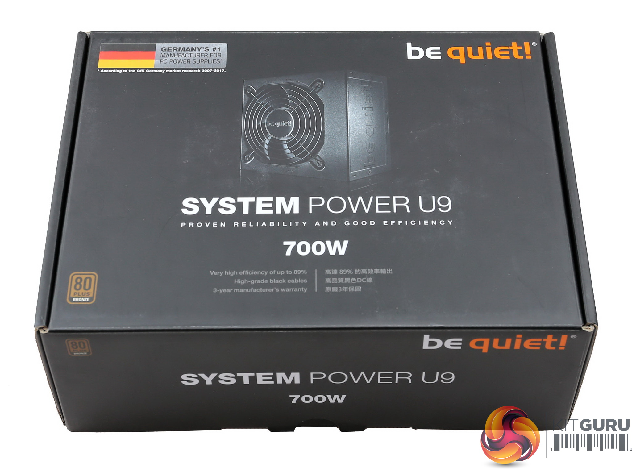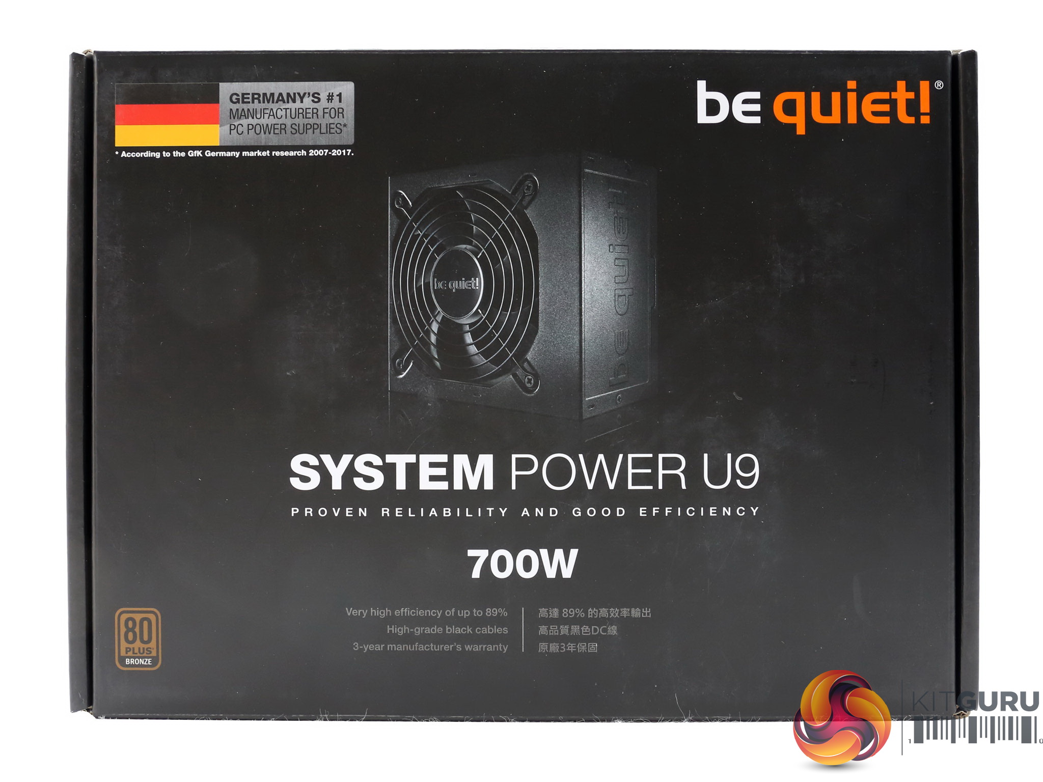 At the front of the box there is a photo of the power supply along with the model number and the capacity. We also notice a German flag in the top-left corner, since be quiet! is a German brand.