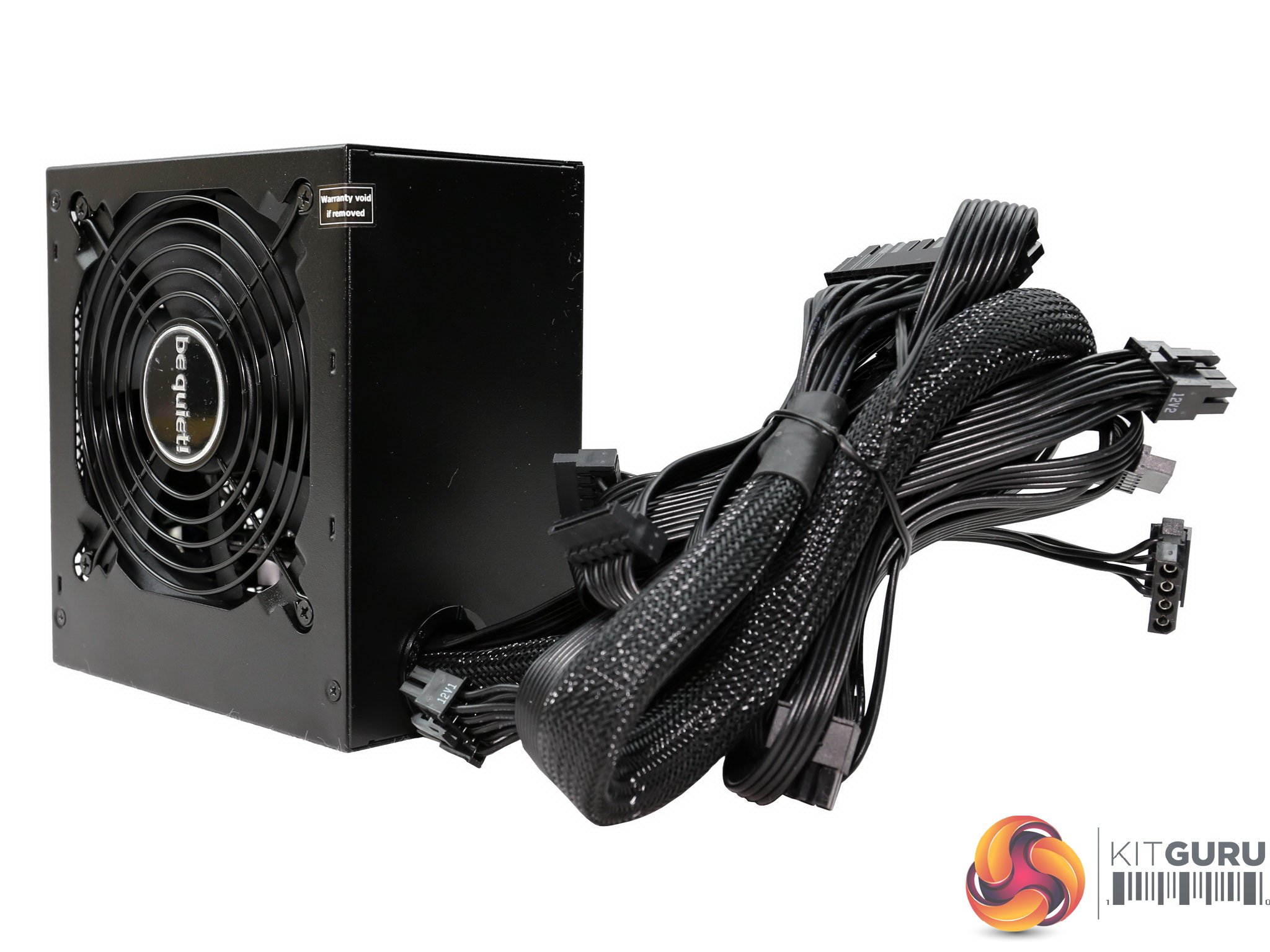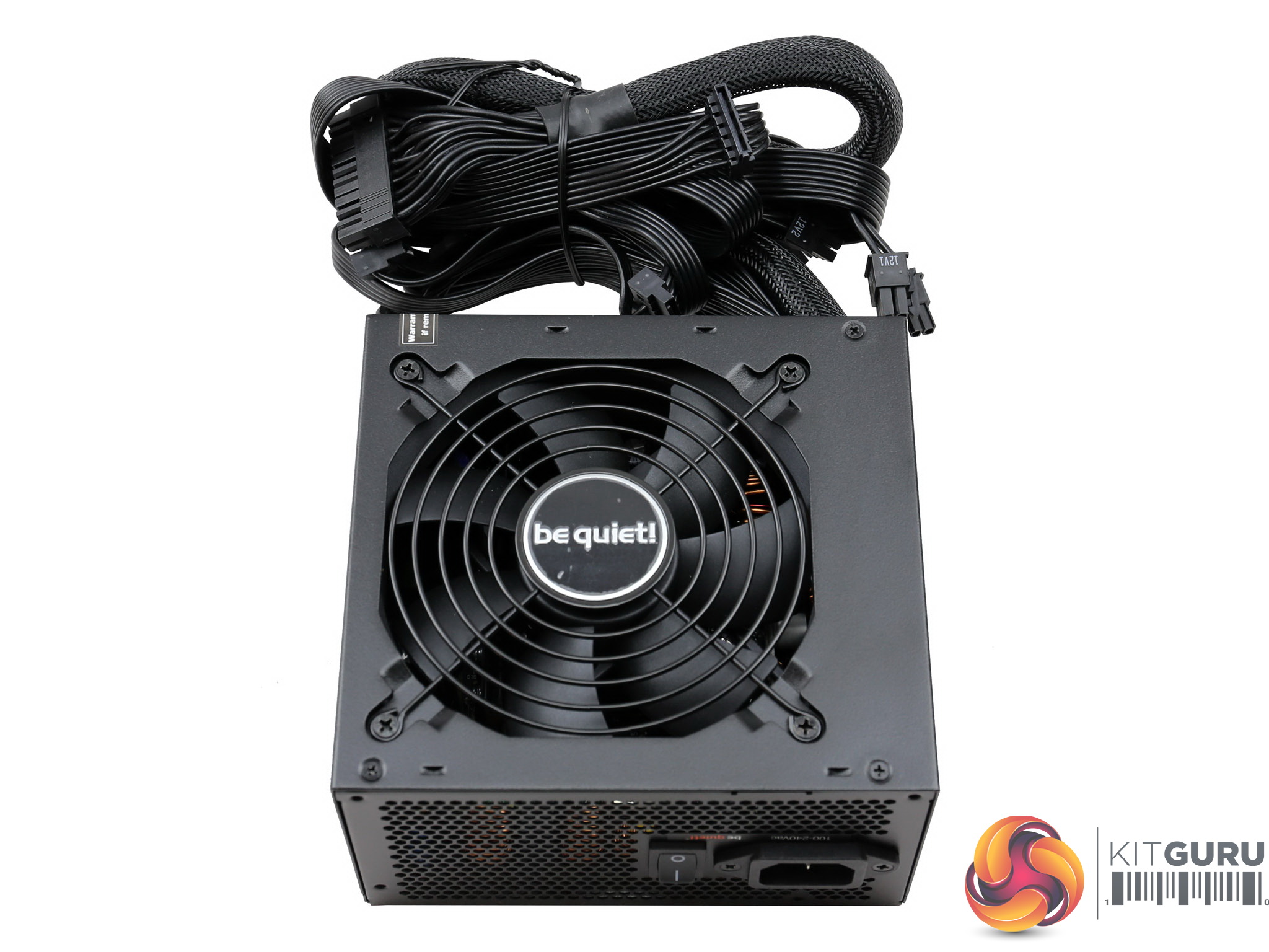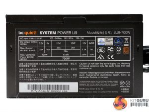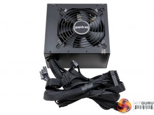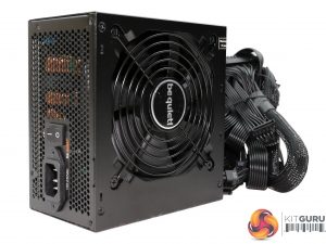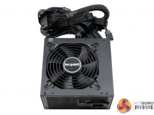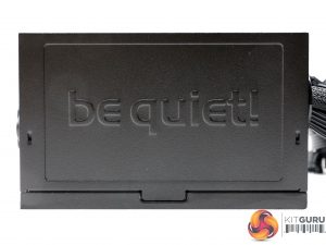 The be quiet! logo is stamped onto one of the sides, while on the other is a large power specifications label.