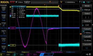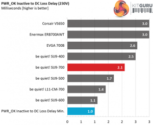 The hold-up time is much lower than 17ms. This was expected since the bulk cap is small. At least the power ok signal is accurate.
