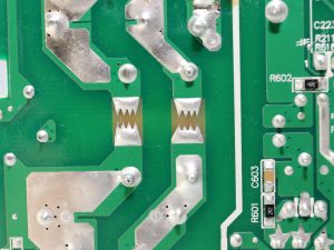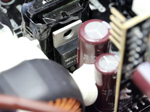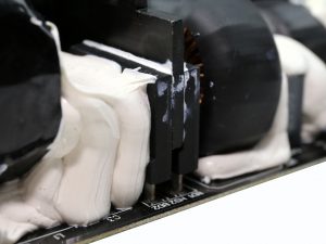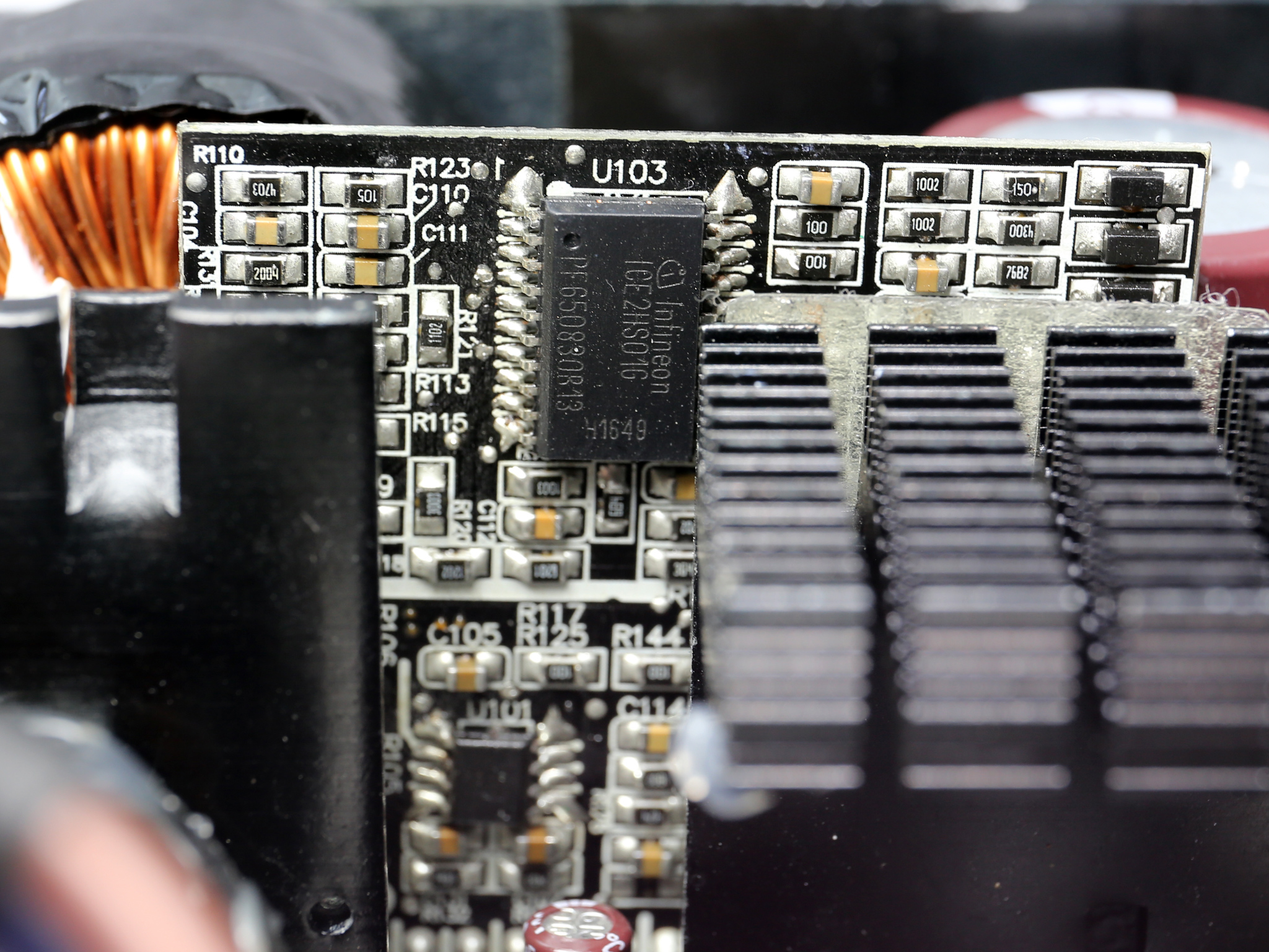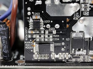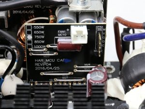 In the secondary side two daughter-boards host six Infineon BSC014N04LS. The HX850 has eight of those FETs while the HX1000 has ten.