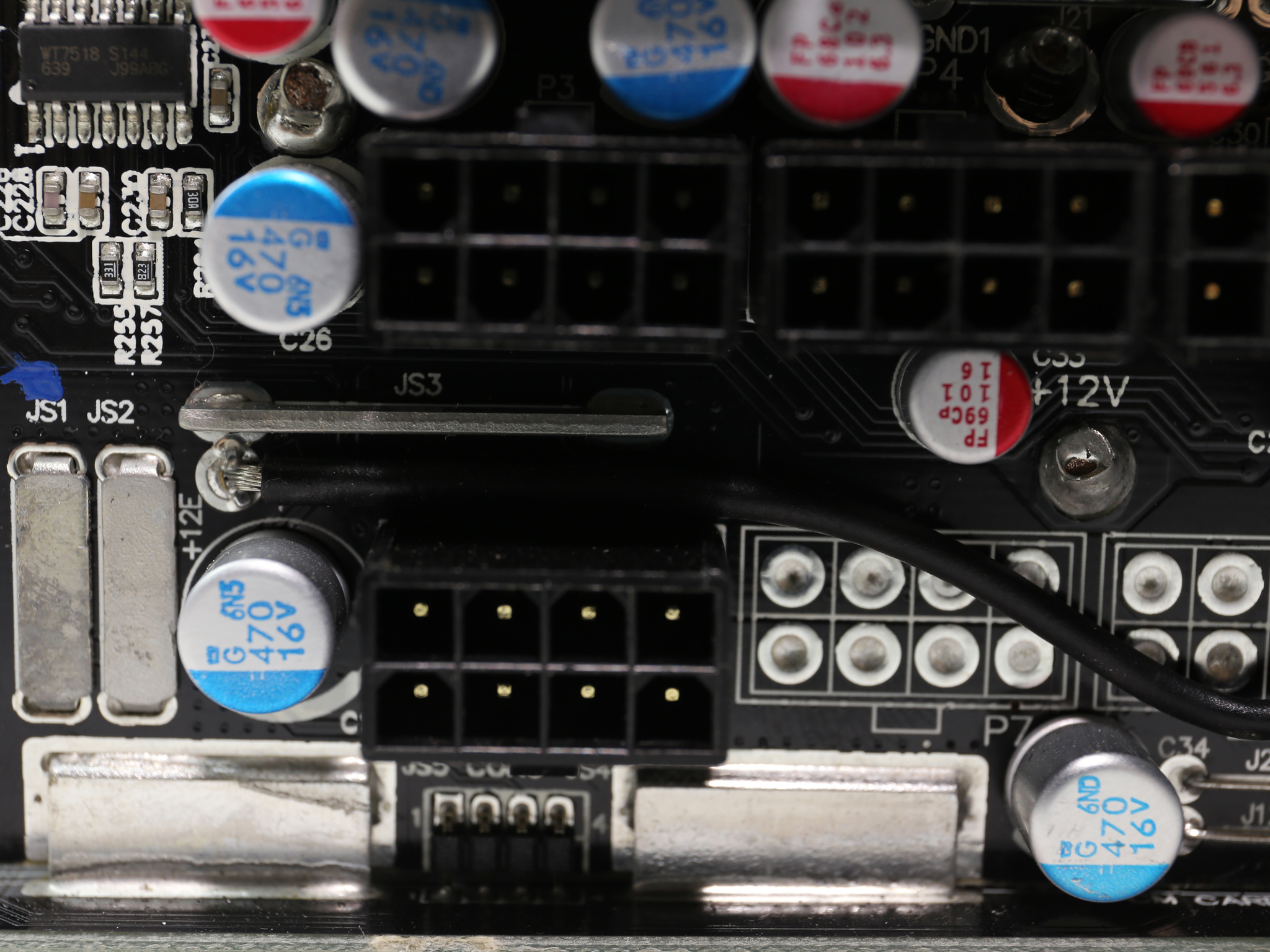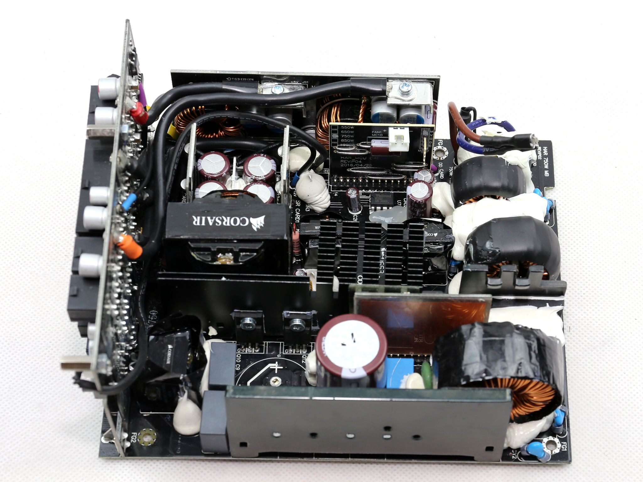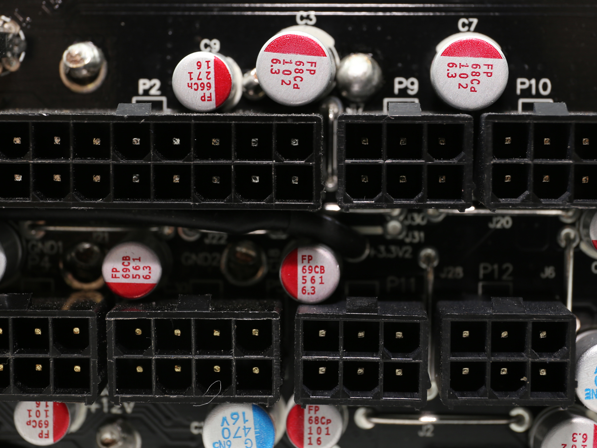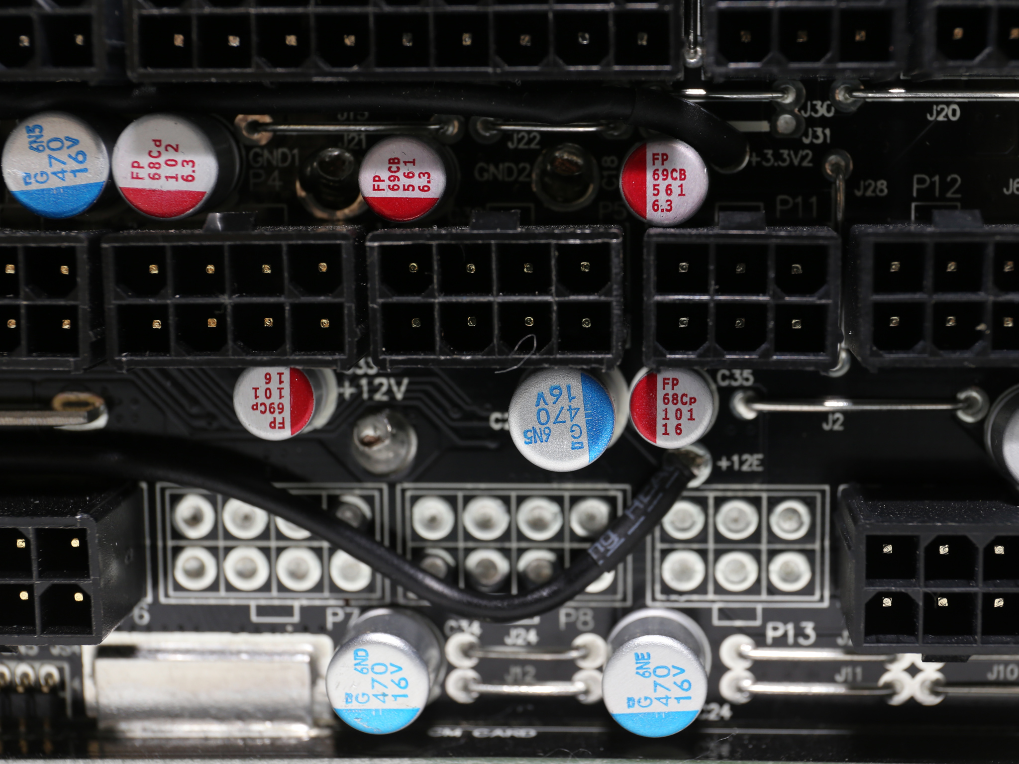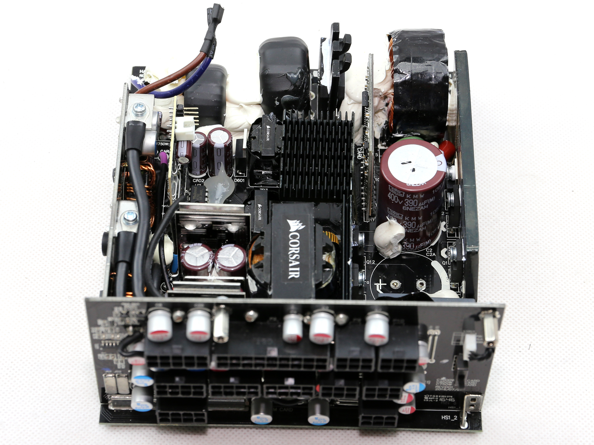 In the secondary side there are no proper heatsinks, because the +12V FETs are highly efficient so several bus bars are enough to cool them down.