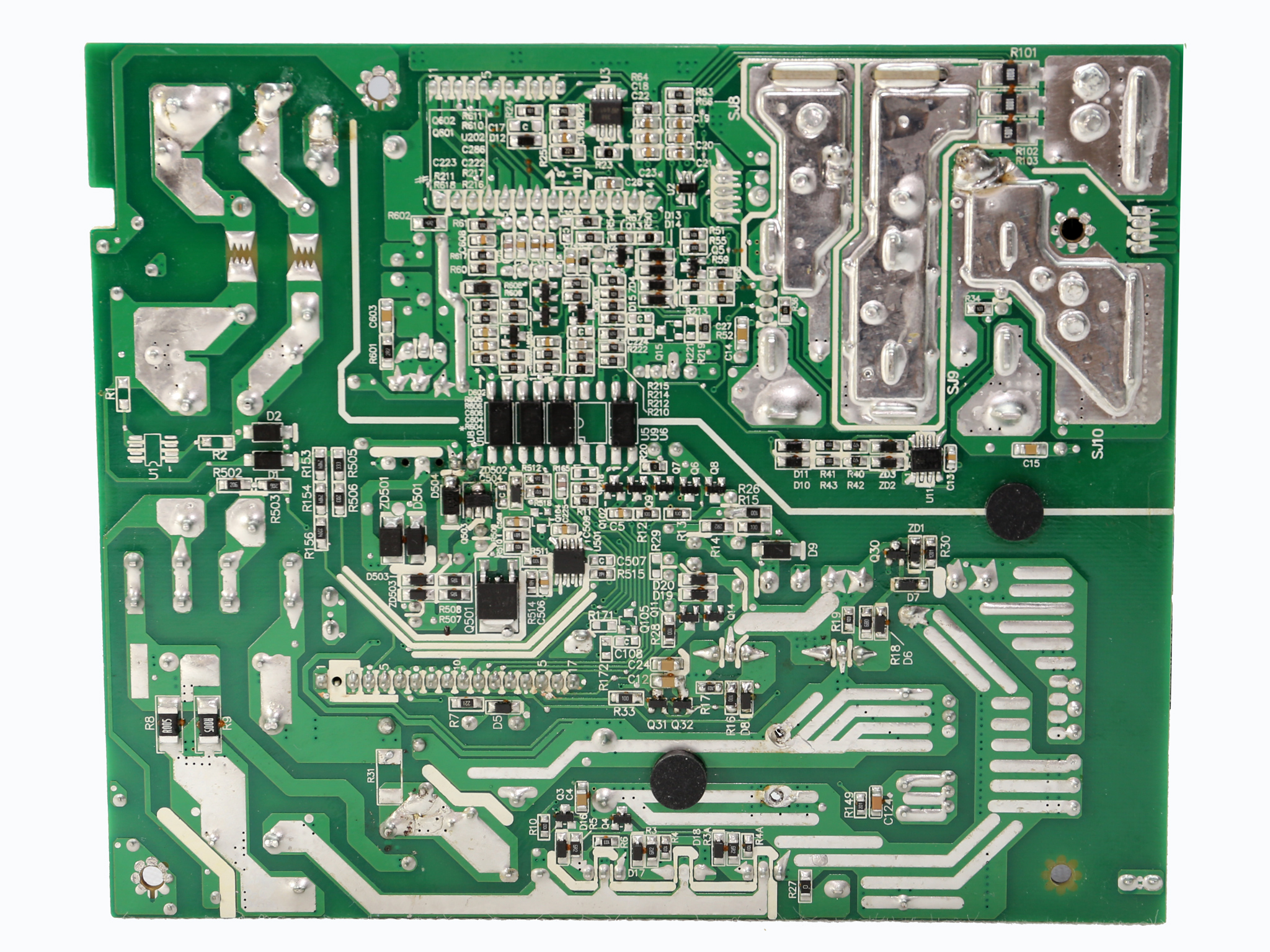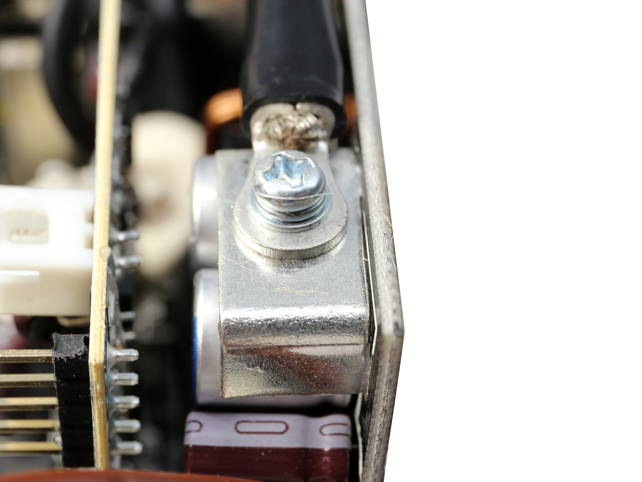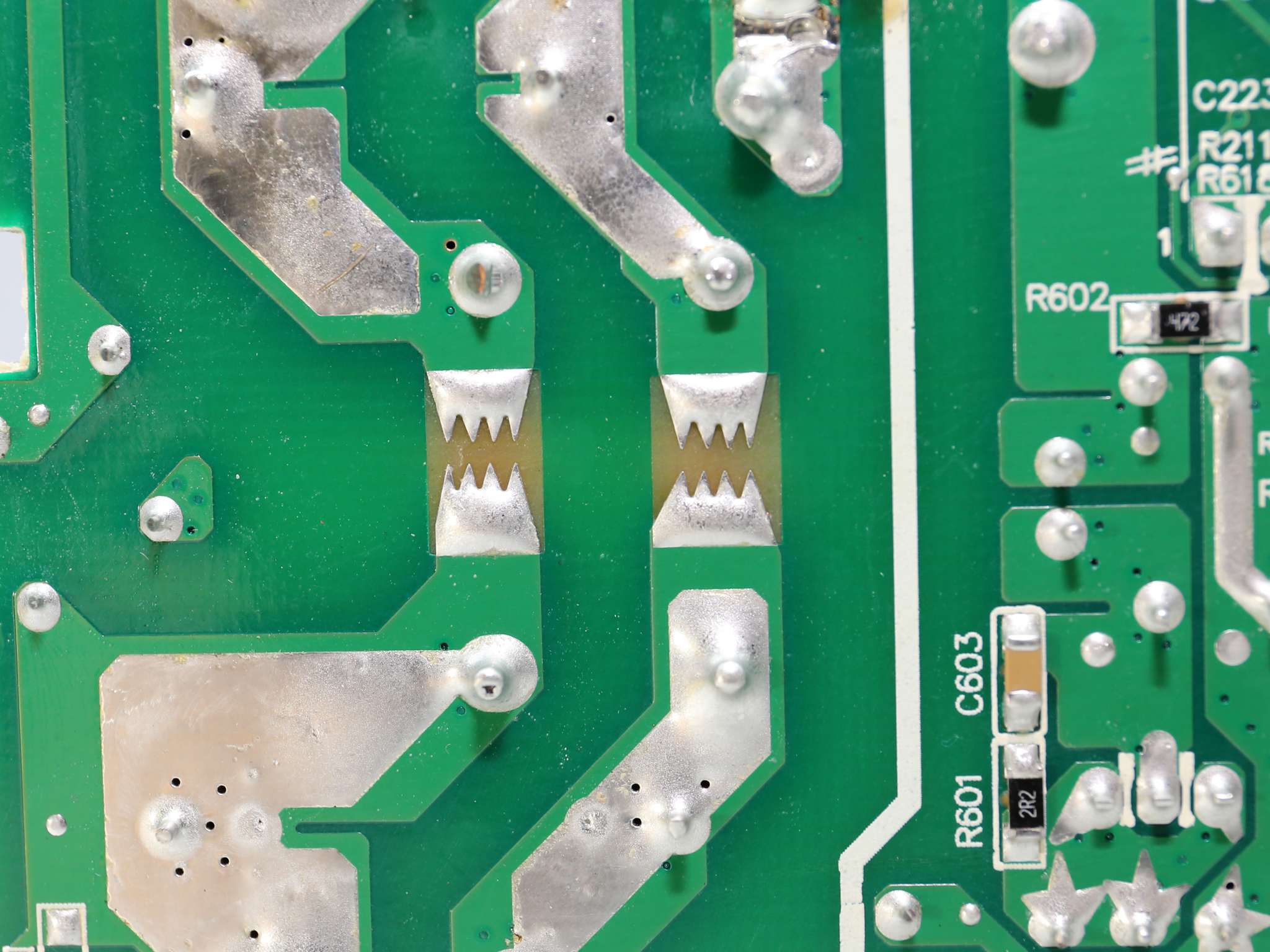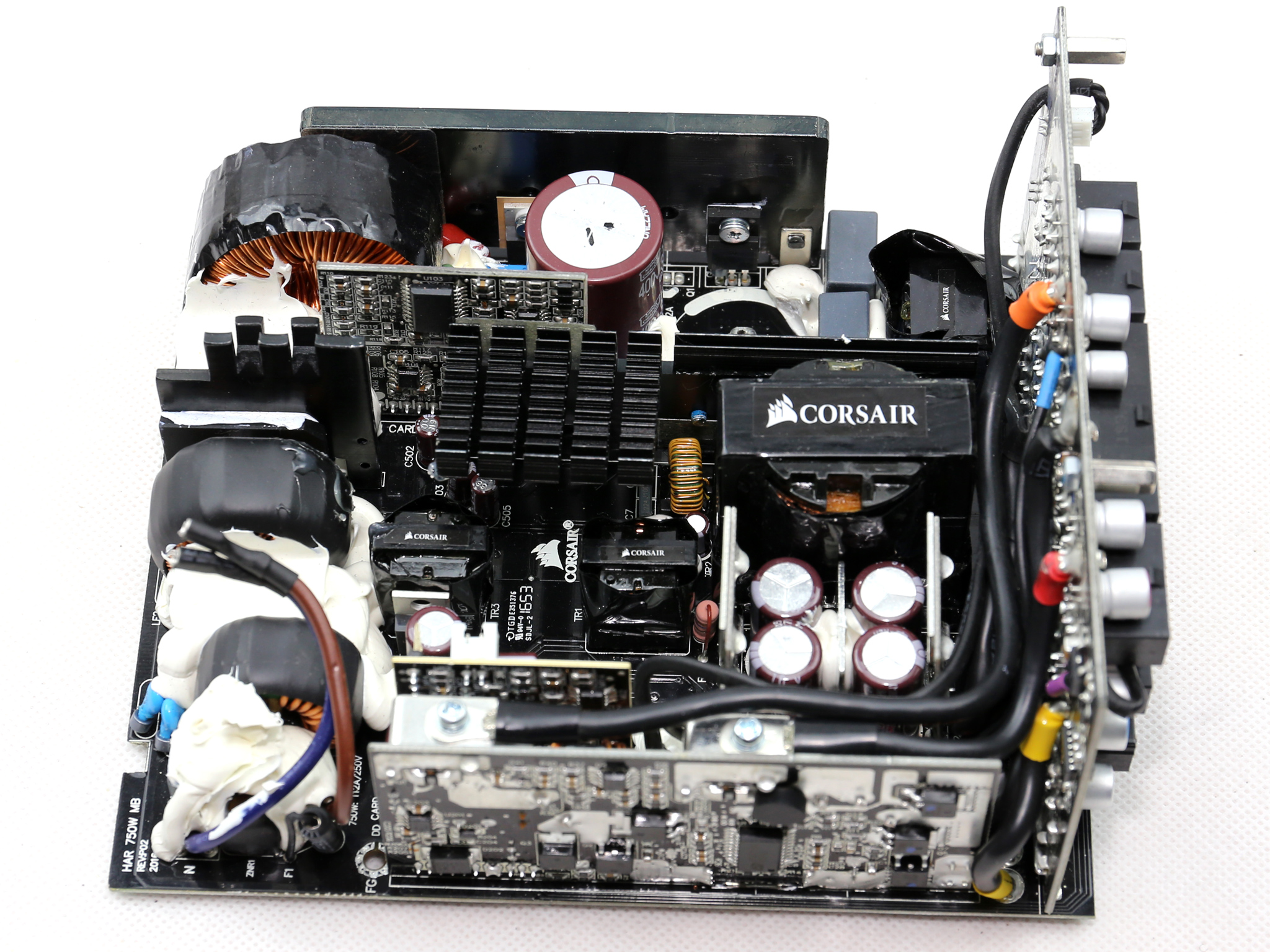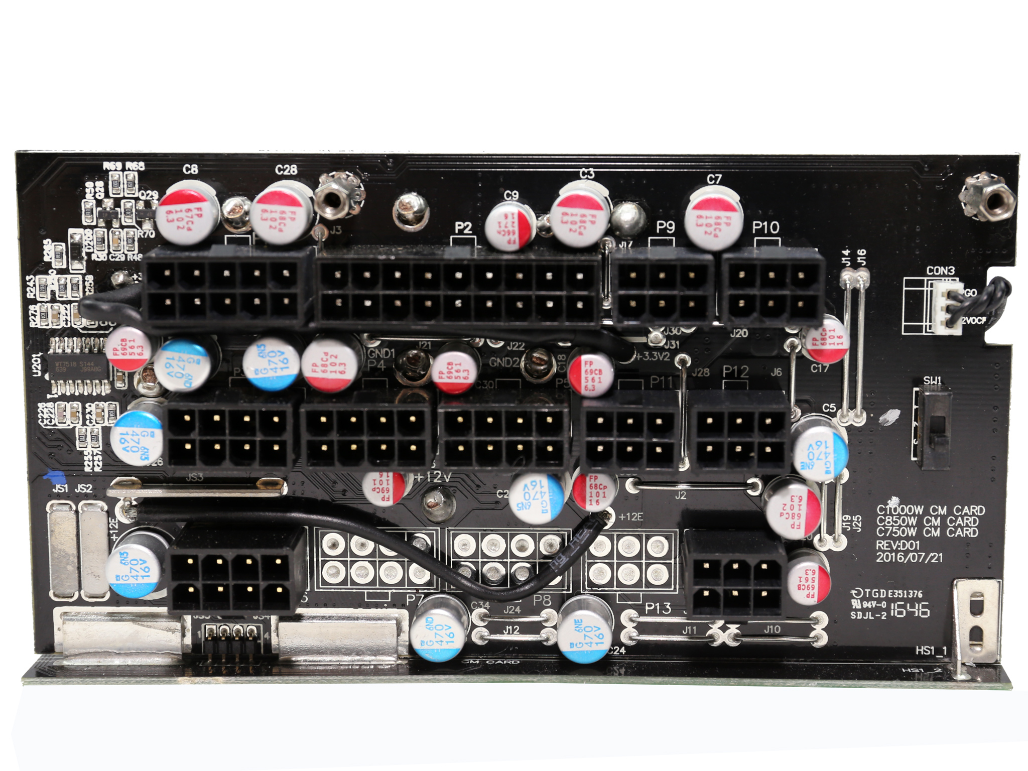 In the secondary side there are no proper heatsinks, because the +12V FETs are highly efficient so several bus bars are enough to cool them down.
