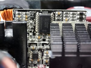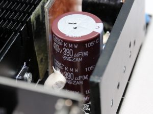The build quality is high and only Chemi-Con electrolytic caps are used … unfortunately not the companies high-end lines but they will do a fine job and sustain good performance through time. Besides electrolytic caps a large number of polymer ones are also utilized.