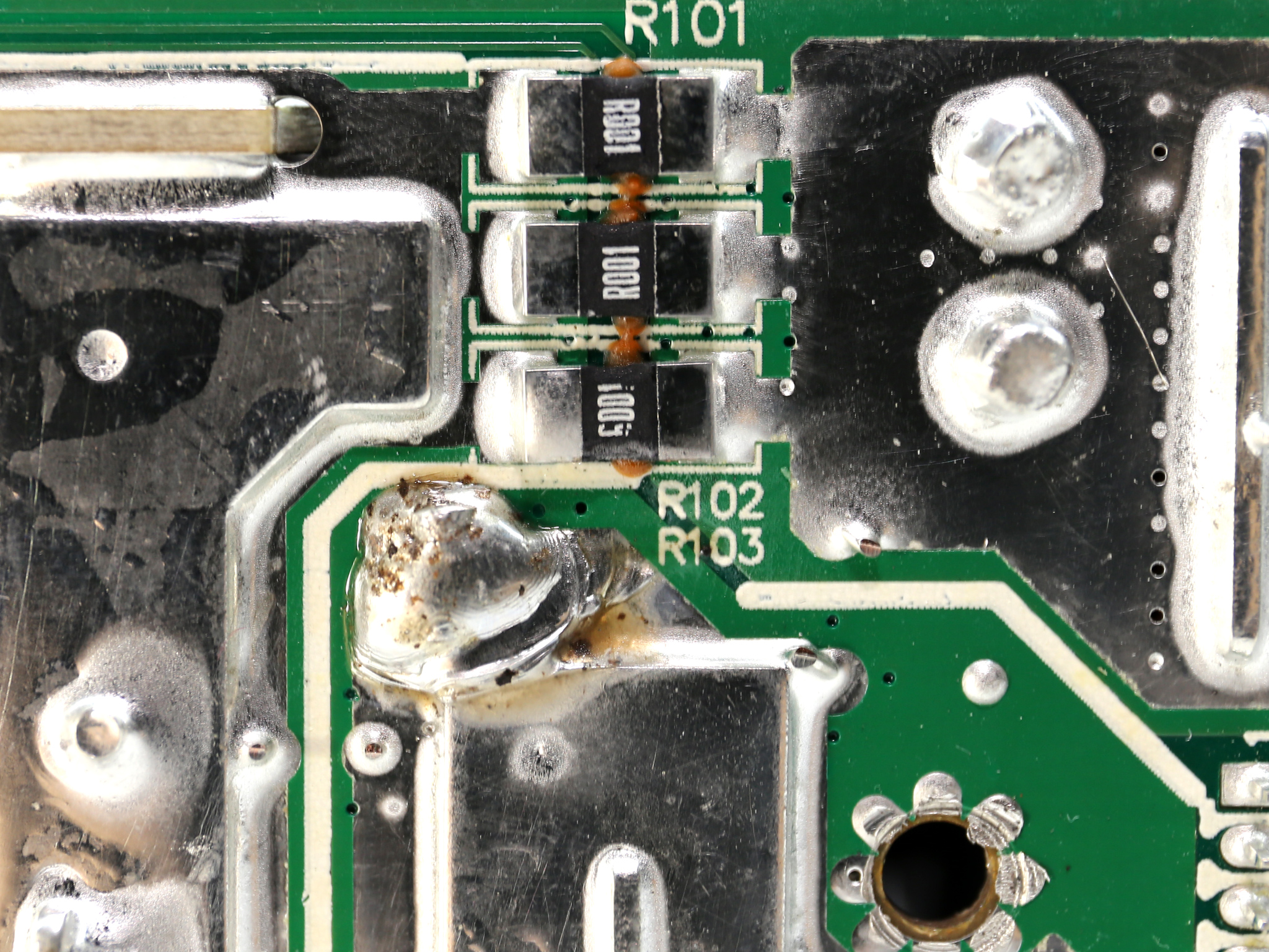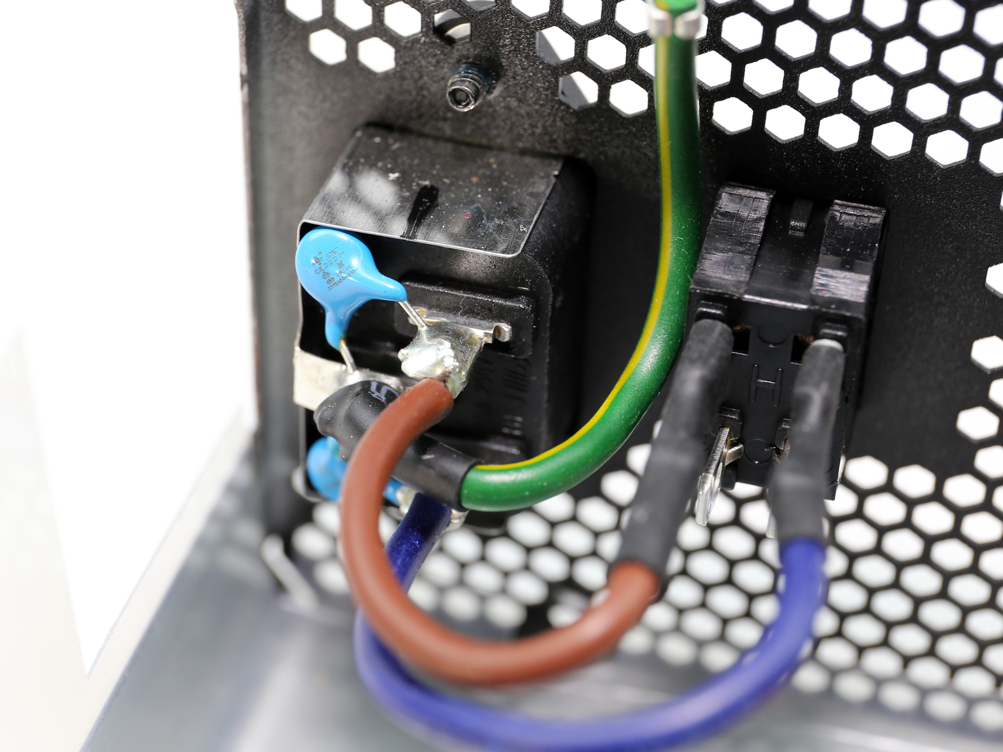The first part of the transient is on the AC receptacle and it incorporates a couple of Y caps. The same filter continues on the main PCB with four additional Y caps, two X caps, a pair of CM chokes and an MOV (Metal Oxide Varistor) which protects the unit from spikes and voltage overshoots from the mains.